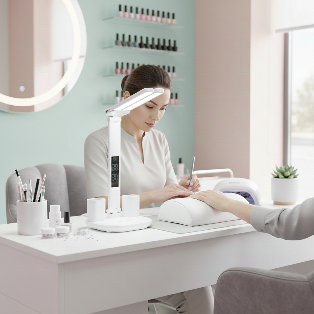 Dzięki trzem barwom światła (ciepła, zimna, neutralna) dostosujesz oświetlenie do swoich potrzeb. Niezależnie od tego, czy czytasz książkę, pracujesz na komputerze, malujesz paznokcie czy uczysz się – możesz regulować jasność i kąt nachylenia, by zapewnić sobie maksymalny komfort.