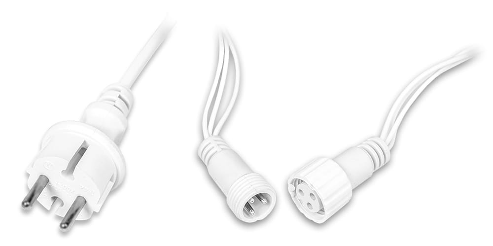 - możliwość łączenia oświetlenia (męskie i żeńskie końcówki) (nawet do 5 kompletów) - jeden kontroler steruje wszystkimi kompletami.
