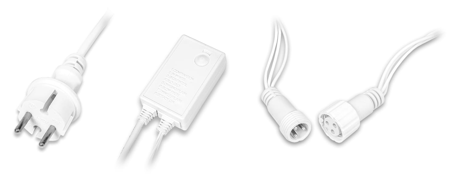 - możliwość łączenia oświetlenia (męskie i żeńskie końcówki) (nawet do 5 kompletów) - jeden kontroler steruje wszystkimi kompletami.