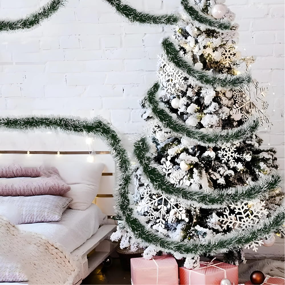 ✨ Dekoracja Drzwi Sypialni: Dodaj świąteczny akcent do sypialni, obwodząc zielonym łańcuchem ramę łóżka lub drzwi. To delikatny sposób na wprowadzenie świątecznego nastroju.