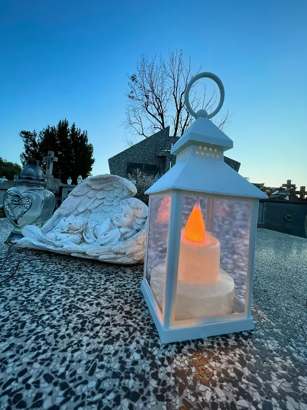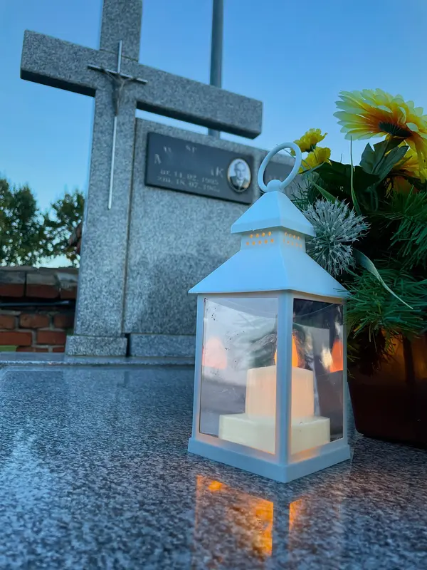 Ta mała latarenka na baterie doskonale sprawdzi się również jako znicz na grobie – jest trwała i bezpieczna, a jej światło będzie się paliło przez długi czas. ? Dzięki zasilaniu na baterie nie gaśnie przy wietrze ani deszczu, tworząc spokojny blask na pamiątkę bliskich. ✨ To elegancka i praktyczna alternatywa dla tradycyjnych zniczy.