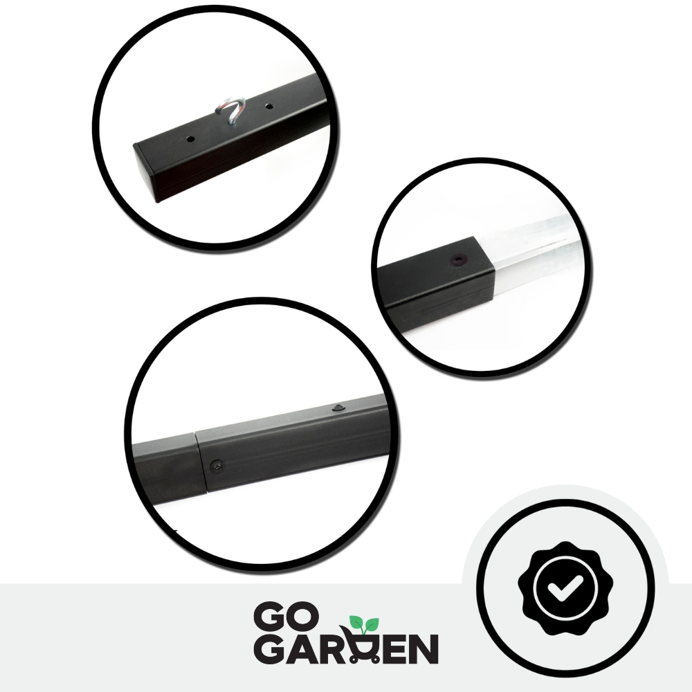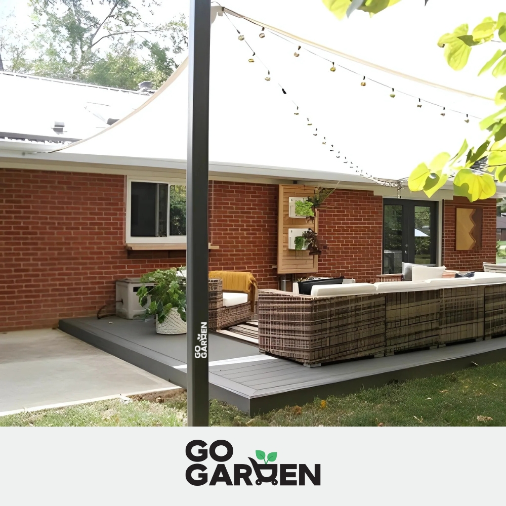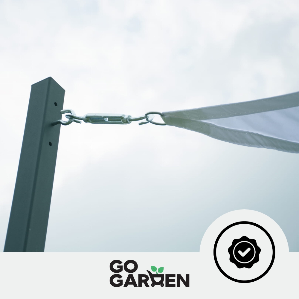 Maszt GoGarden zaprojektowano z myślą o bezpiecznym i wygodnym mocowaniu żagli przeciwsłonecznych. Dzięki regulowanym punktom mocowania oraz możliwości pochylenia masztu, użytkownik ma pełną kontrolę nad naprężeniem i kątem montażu materiału.