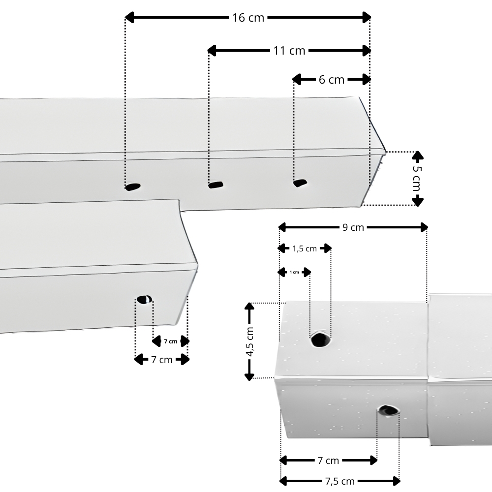 Maszt wyposażony jest w trzy poziomy otworów montażowych (na wysokościach 225 cm, 230 cm i 235 cm), które umożliwiają elastyczne dopasowanie wysokości zawieszenia żagla. Dzięki temu z łatwością dostosujesz kąt nachylenia tkaniny do warunków pogodowych, pory dnia czy preferowanego poziomu zacienienia.