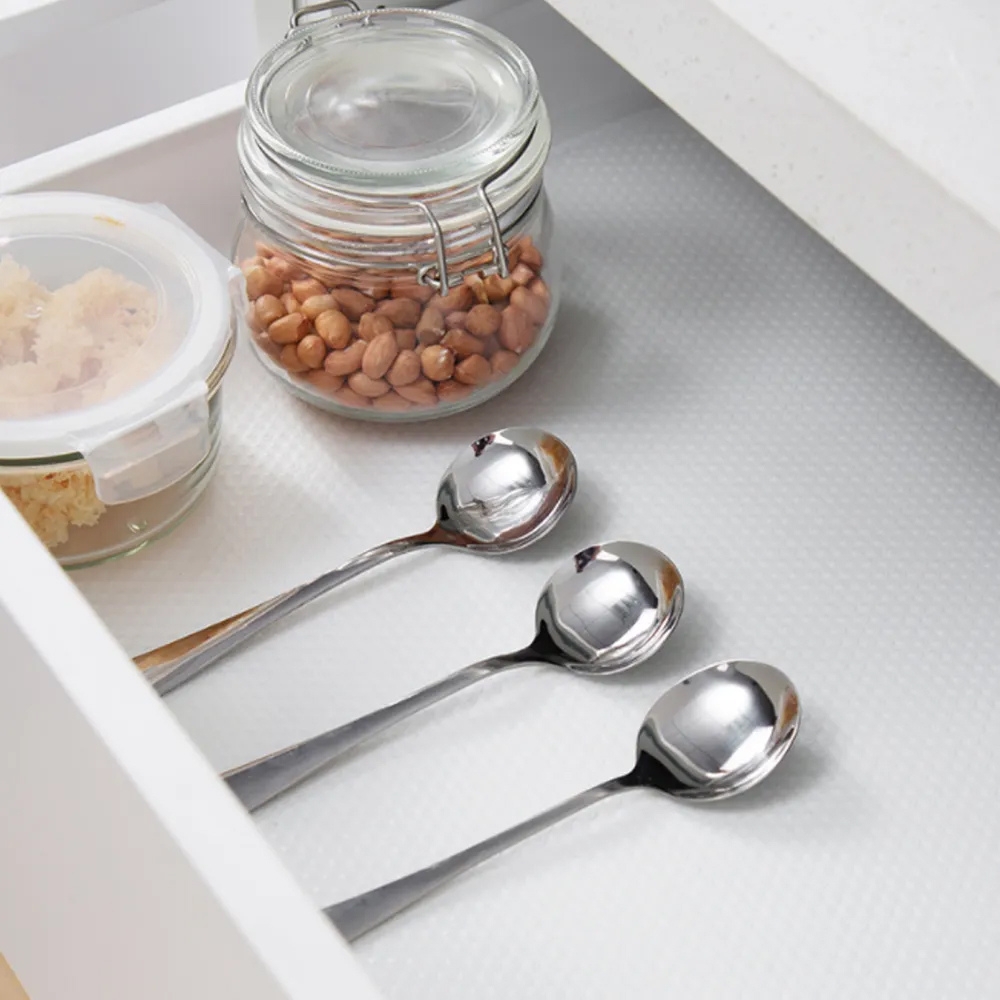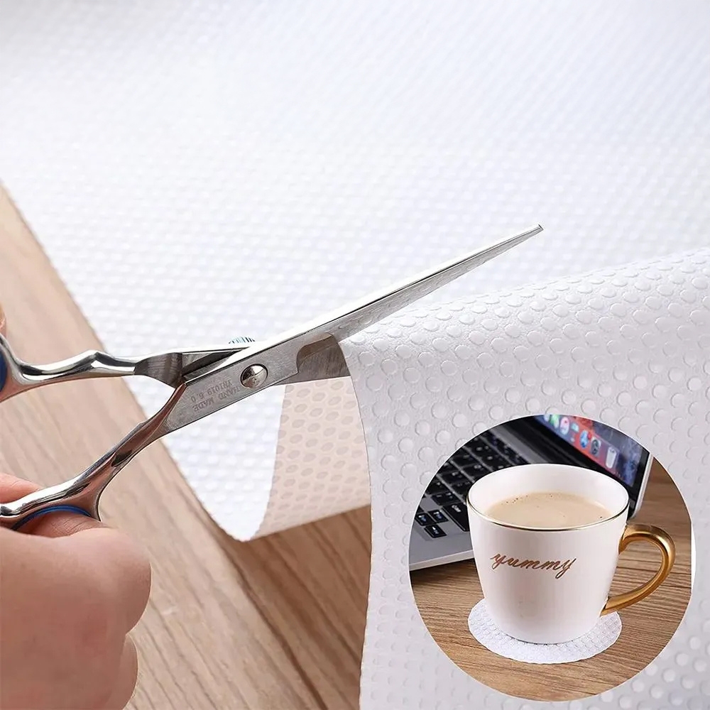 Dzięki specjalnej antypoślizgowej strukturze mata zapobiega przesuwaniu się przedmiotów, co sprawia, że talerze, szklanki czy kosmetyki pozostają na swoim miejscu. To idealne rozwiązanie do szuflad, szafek, lodówki czy nawet półek na buty!