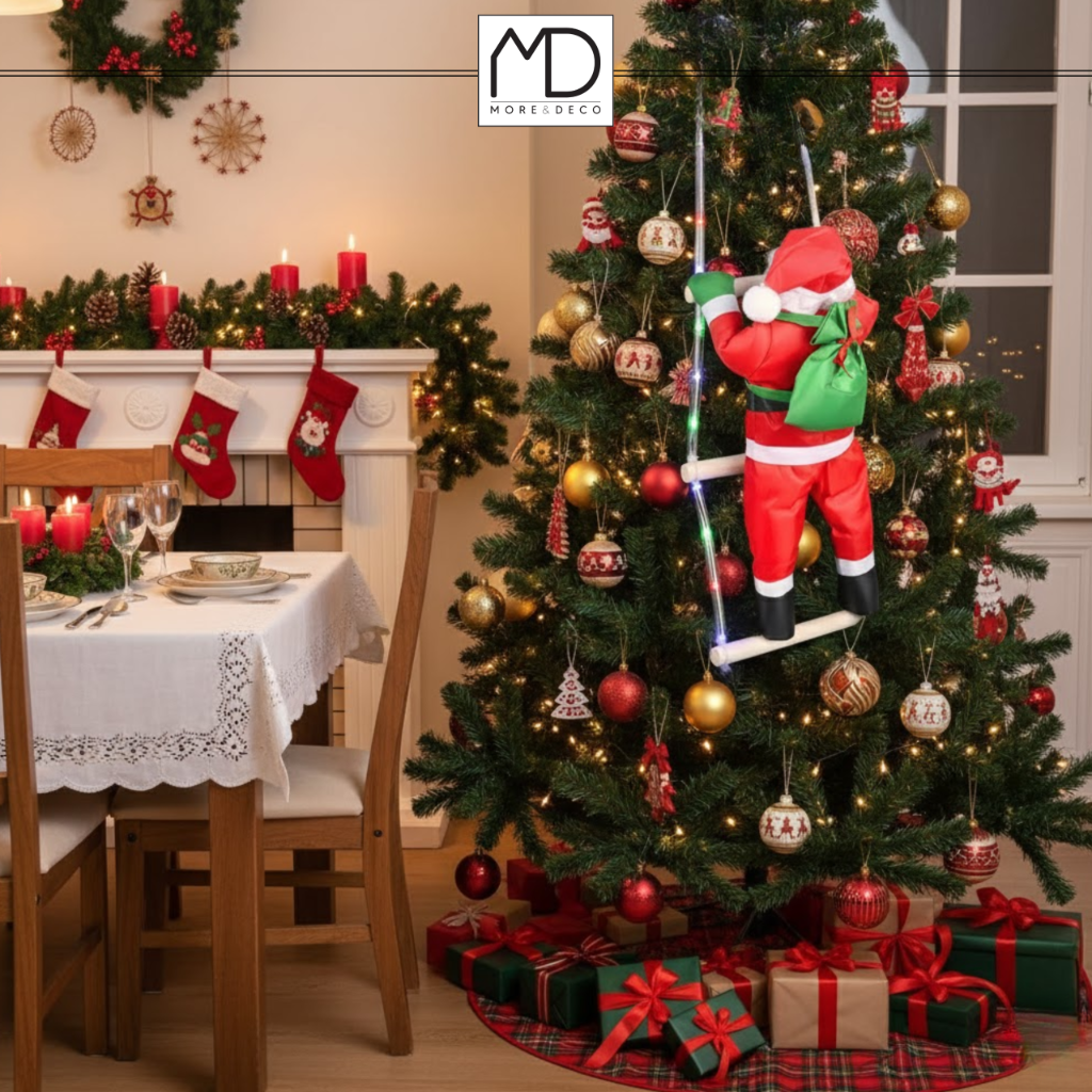 Ta dekoracja sprawi, że każde wnętrze nabierze świątecznego uroku i ciepła. Wesoły Święty Mikołaj wspinający się po drabince przyciąga uwagę dzieci i dorosłych. Idealnie pasuje do choinki, kominka, witryny sklepowej czy okna. Stwórz atmosferę, która od pierwszego spojrzenia wprowadza w świąteczny nastrój.