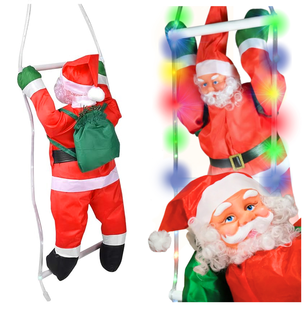 MIKOŁAJ NA DRABINIE DEKORACJA ŚWIĄTECZNA ŚWIECĄCA MULTIKOLOR LED 70 CM