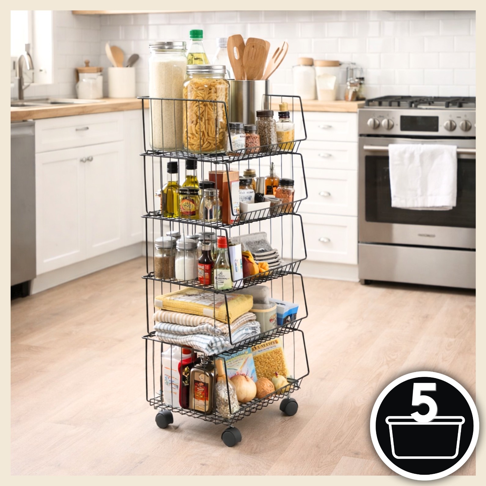➡️ Model Cinque na kółkach – pomaga utrzymać porządek i wspiera podczas codziennego gotowania