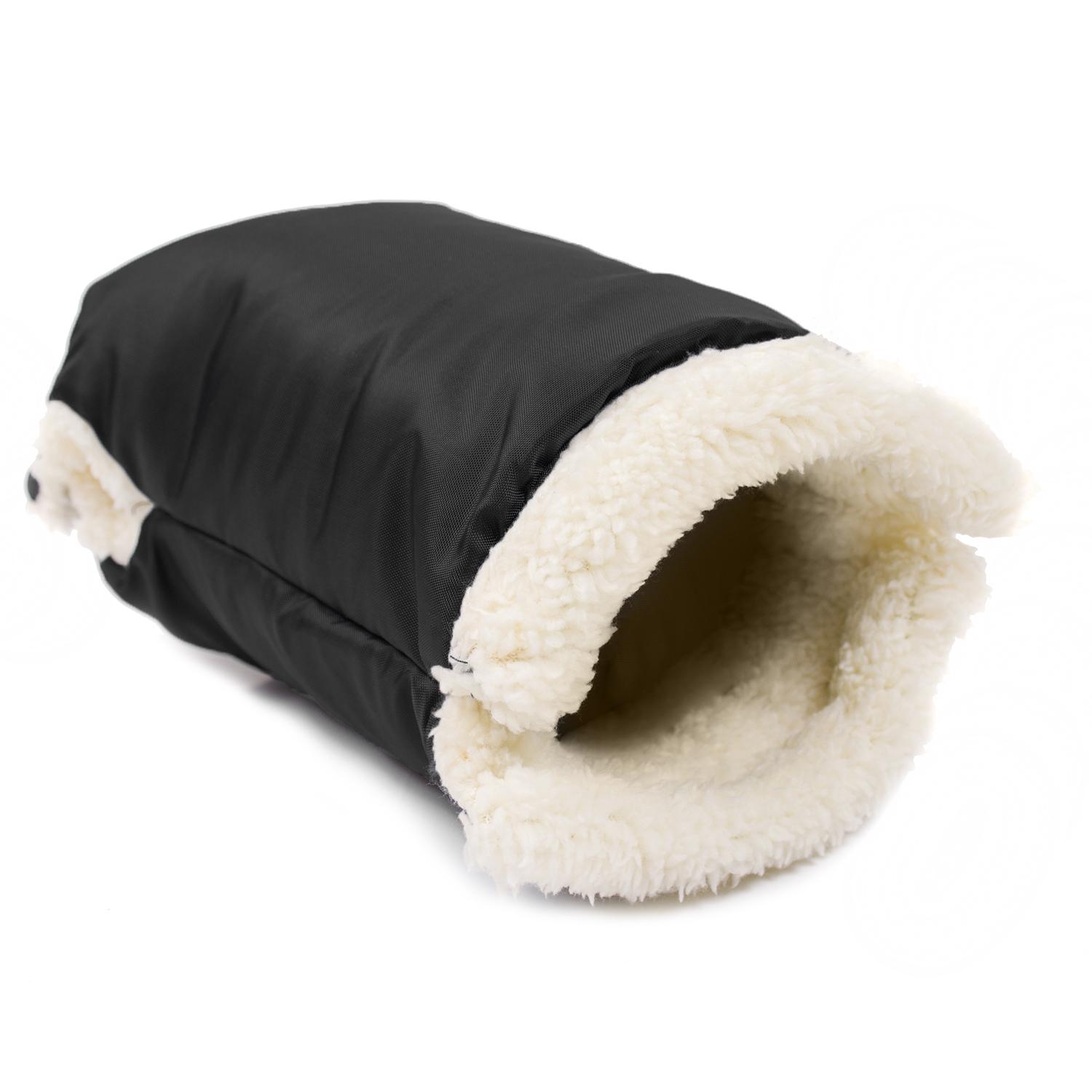 Mufka rękawiczki futerko czarne do wózka dziecięcego sanek ocieplane zimę