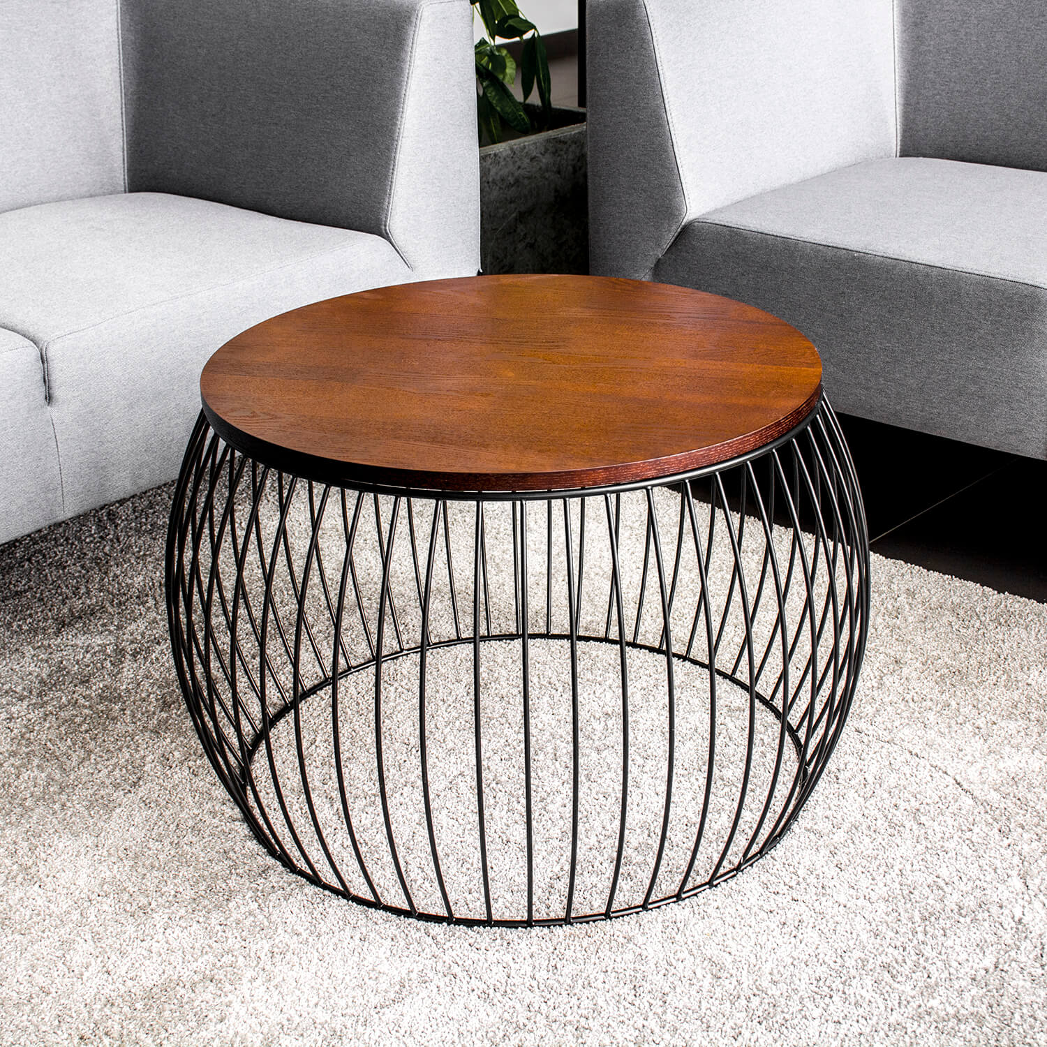 Metalowy nowoczesny stolik- kosz inspirowany kształtem bębna, to funkcjonalny element wyposażenia w minimalistycznym stylu, który świetnie sprawdzi się w twoim salonie.