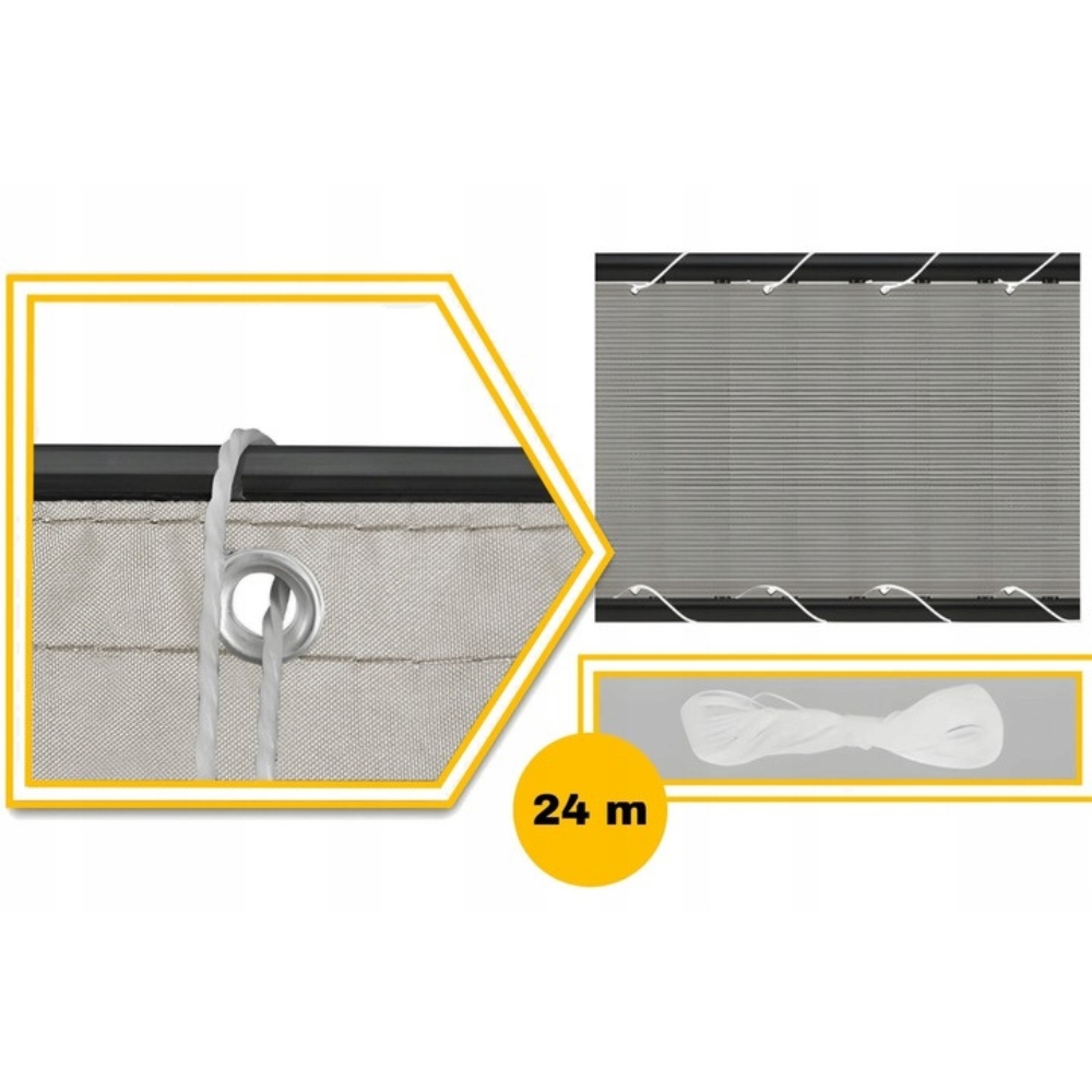 ⭕️ Aluminiowe oczka o zwiększonej odporności na rdzę, które zostały wszyte co 50 cm, zapewniają szybki i stabilny montaż osłony.