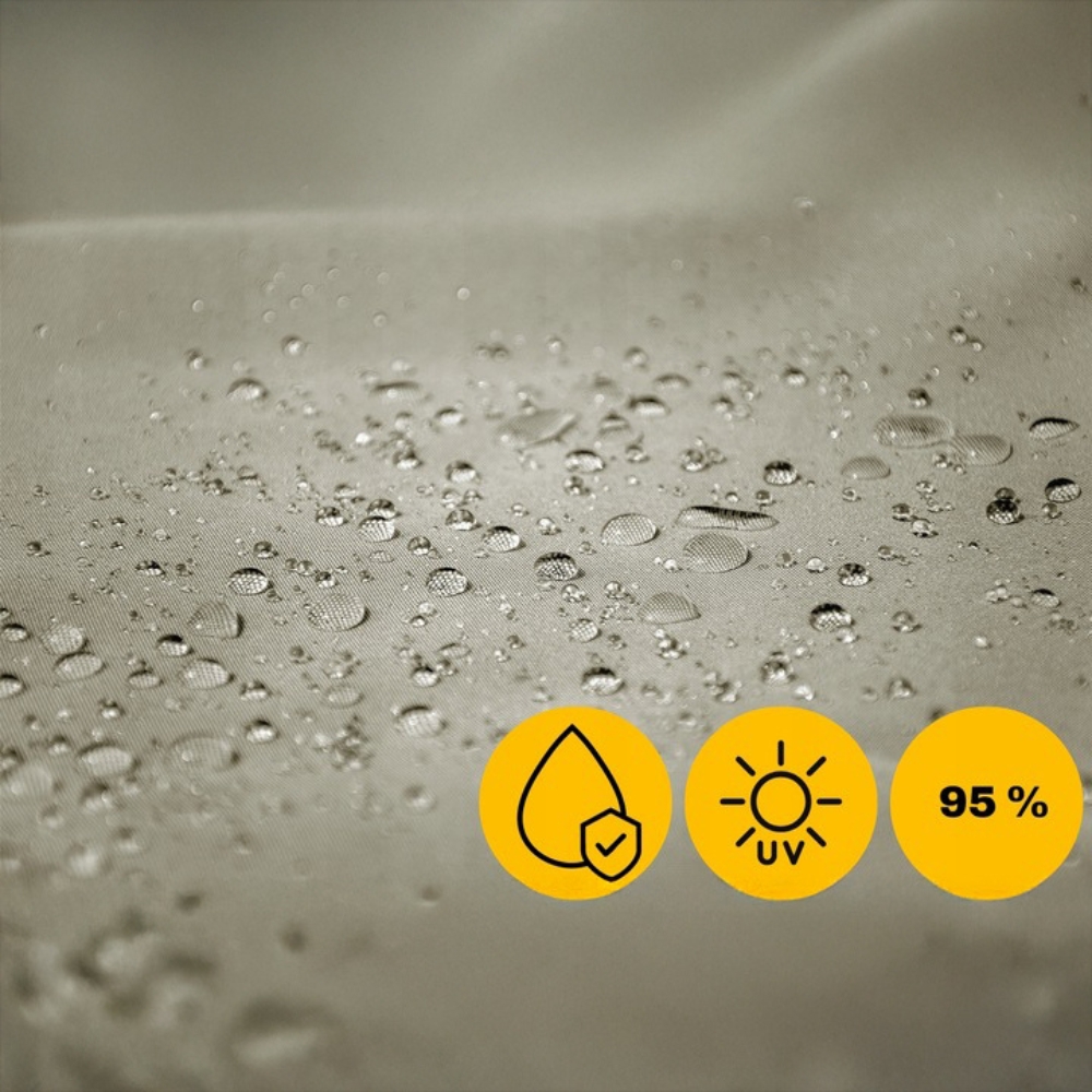Mata skutecznie osłania przed wiatrem i kurzem, a dzięki ochronie UV także przed słońcem! Bez względu na to czy pada deszcz, wieje wiatr czy świeci słońce, możesz mieć pewność, że Twoja osłona będzie w świetnym stanie.