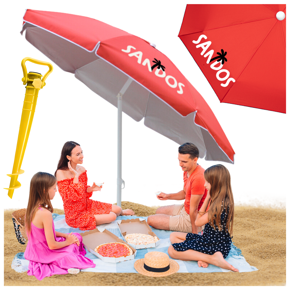 Parasol plażowy marki SANDOS, to popularne akcesorium dla każdego amatora plażowania! Ponadczasowy wygląd wraz z połączeniem najlepszych jakościowo materiałów sprawią, że będzie służył przez długi czas.