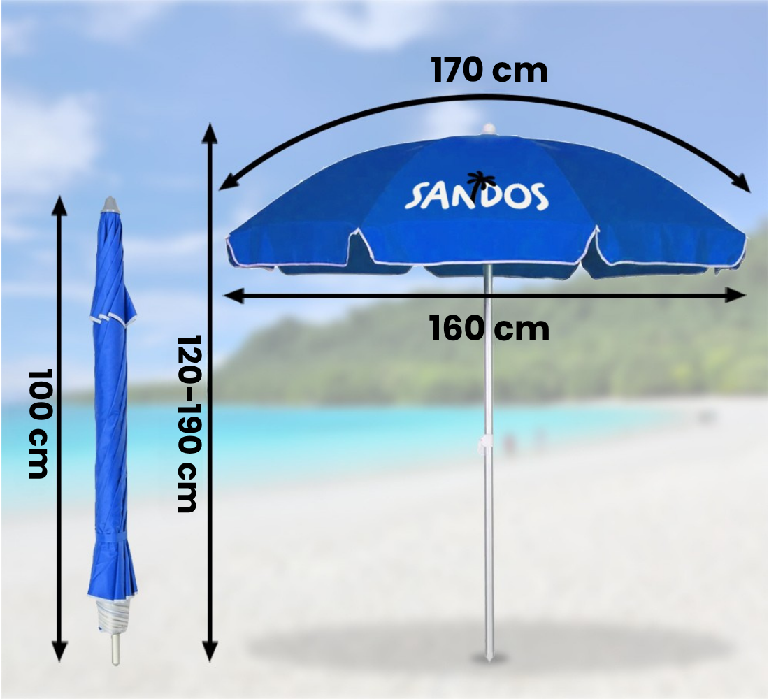 Parasol plażowy marki SANDOS, to popularne akcesorium dla każdego amatora plażowania! Ponadczasowy wygląd wraz z połączeniem najlepszych jakościowo materiałów sprawią, że będzie służył przez długi czas.