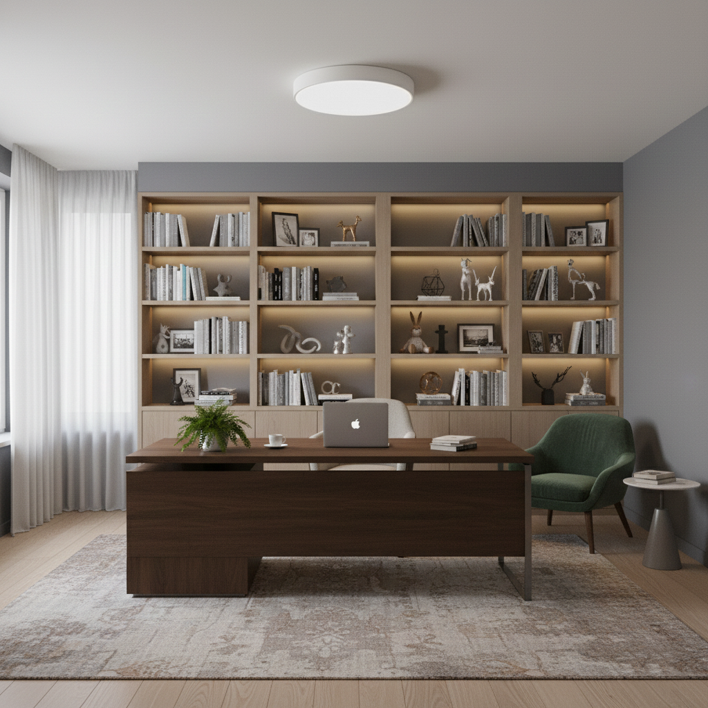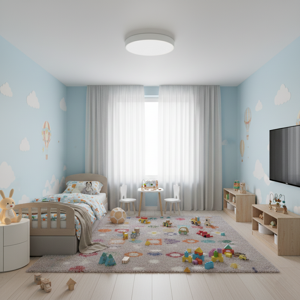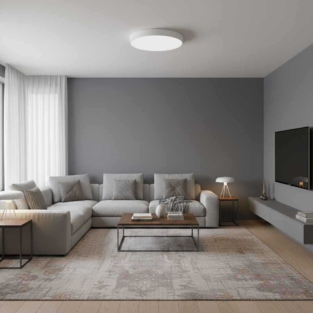 ⚪️ Płaska konstrukcja lampy sprawia, że plafon sprawdzi się idealnie również do pomieszczeń z niskimi sufitami, a zarazem zapewni równomierne oświetlenie bez efektu oślepienia.