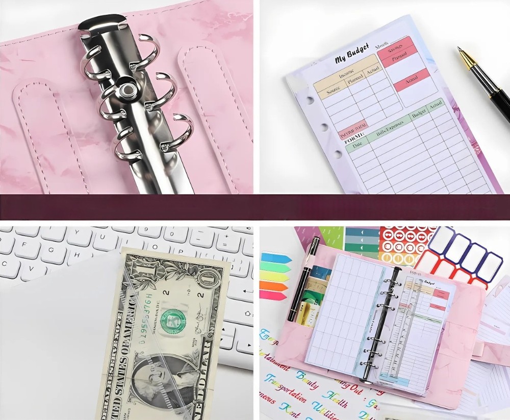 Planer budżetu A6 organizer oszczędnik segregator róż marmur biuro szkoła