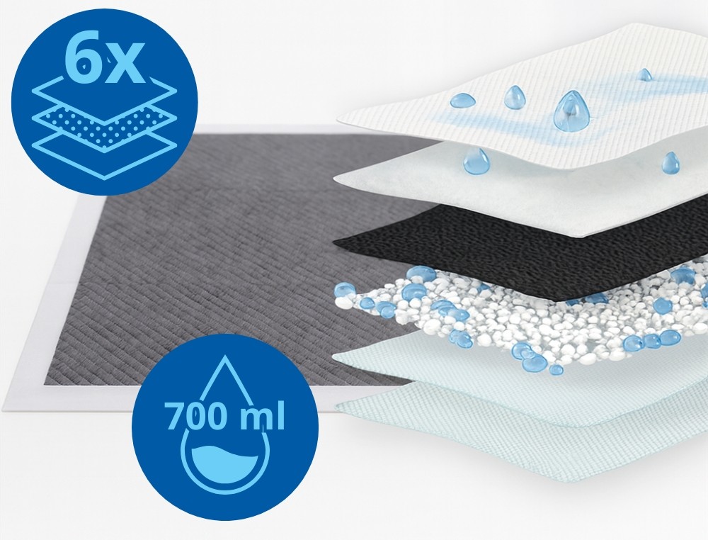 ✅ Super chłonne – aż 6 warstw, które wciągają do 700 ml cieczy jak gąbka.