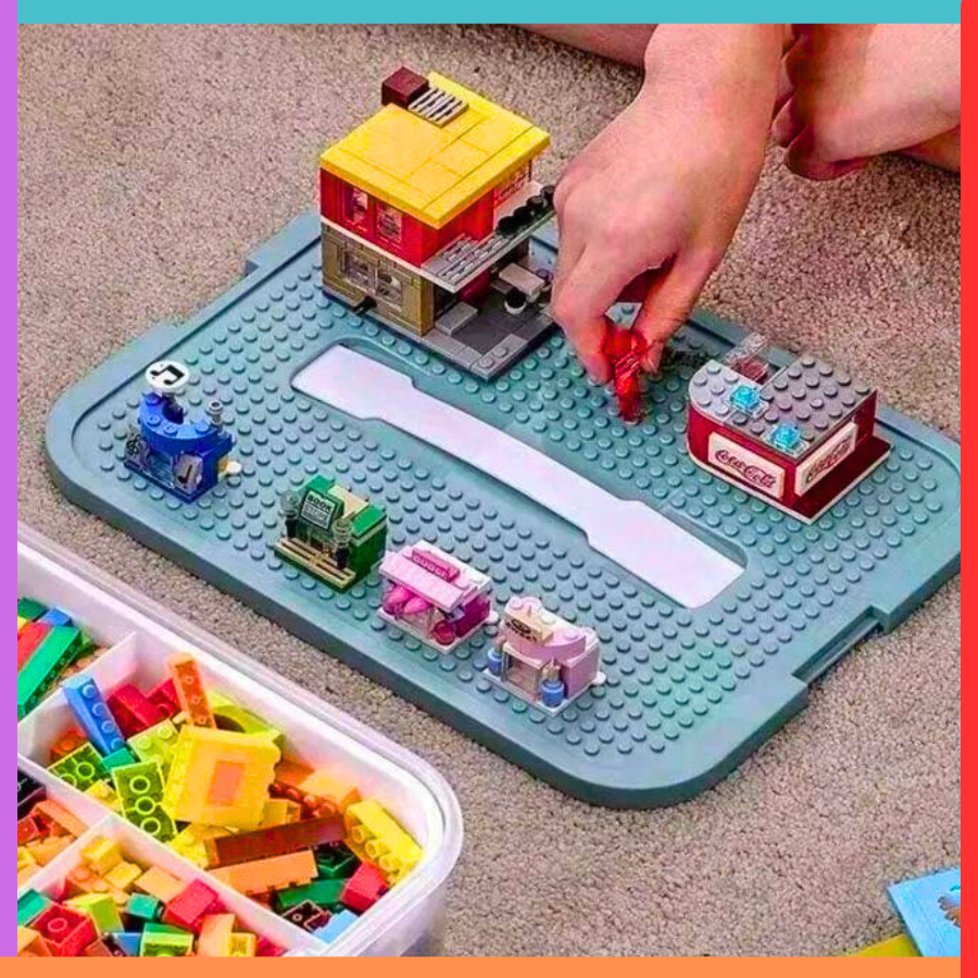 Pojemnik to nie tylko praktyczne przechowywanie – jego pokrywka została wyposażona w wypustki kompatybilne z popularnymi klockami! To oznacza, że można na niej budować konstrukcje bezpośrednio na pudełku, tworząc dodatkową przestrzeń do kreatywnej zabawy. To świetne rozwiązanie zwłaszcza w podróży czy w małych pokojach, gdzie liczy się każdy centymetr przestrzeni.