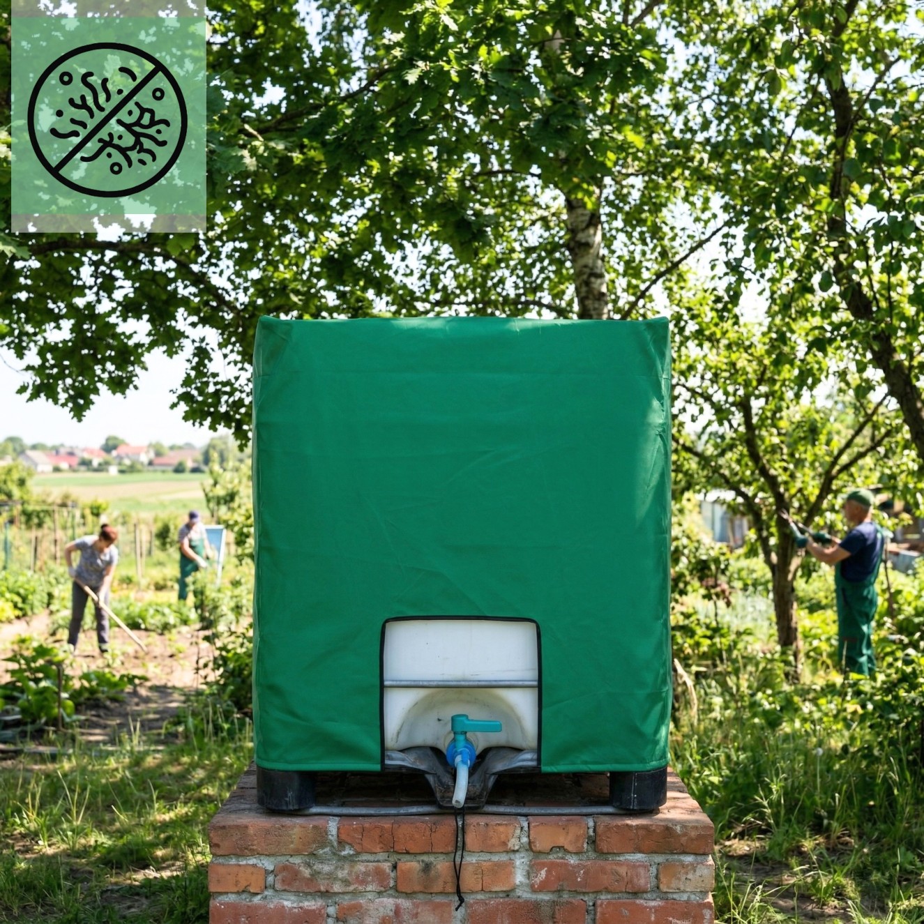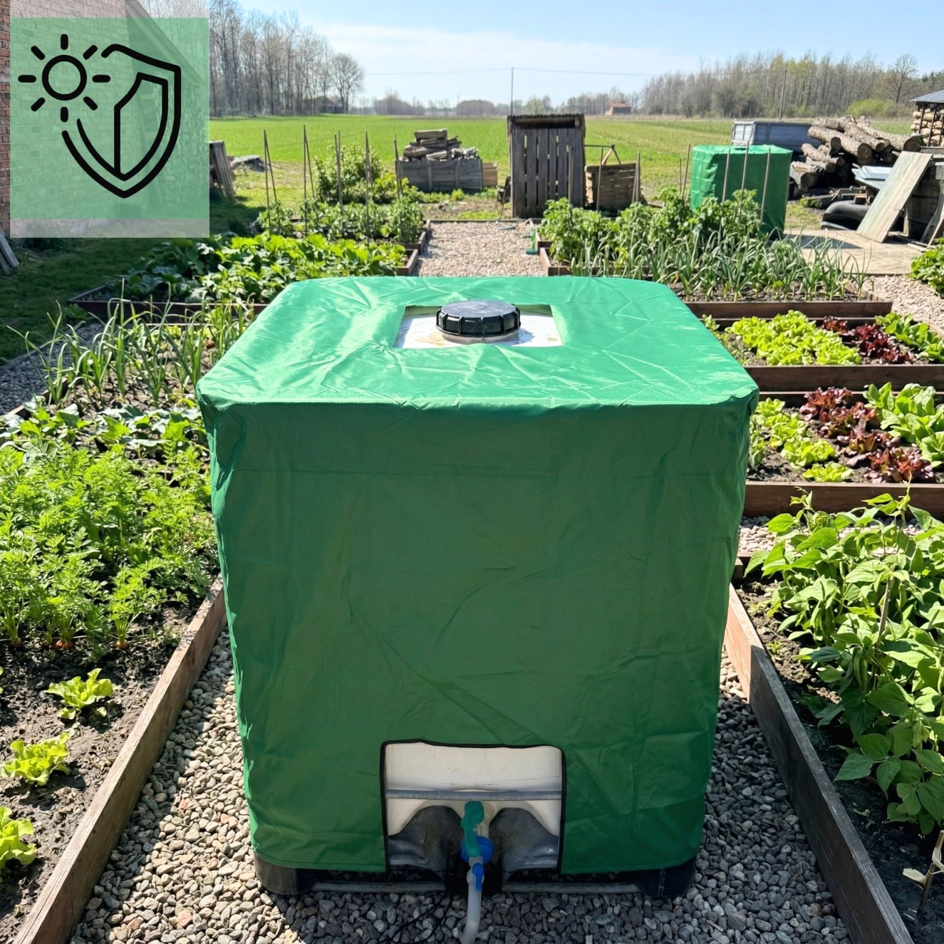 ⛺️ Pokrowiec skutecznie chroni zbiornik przed najczęstszymi zabrudzeniami, na jakie narażone są mauzery w ogrodach i na działkach.