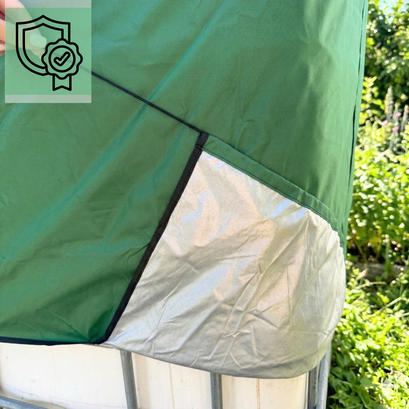 ✅ Od wewnętrznej strony pokrowiec posiada specjalną warstwę typu silver glue, która pomaga ograniczyć nagrzewanie się zbiornika oraz zmniejsza przenikanie światła do jego wnętrza.