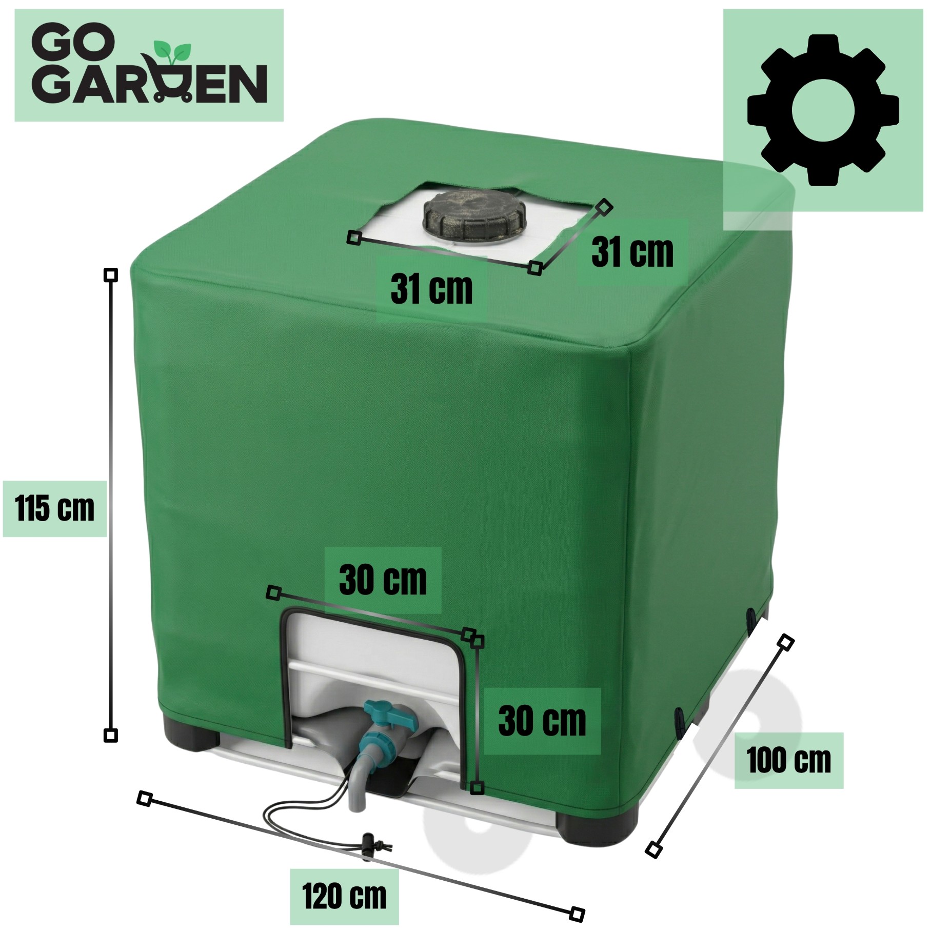 ❕ Pokrowiec został zaprojektowany z myślą o najczęściej spotykanych zbiornikach typu mauzer o pojemności 1000 litrów.