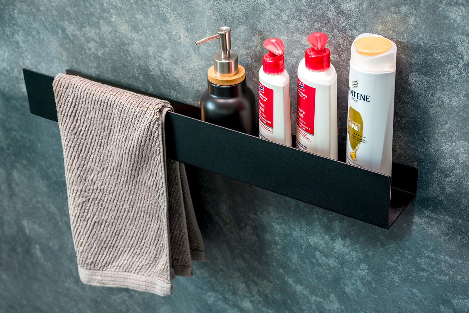 Półka 600-2 czarna ścienna wisząca na ręcznik metalowa