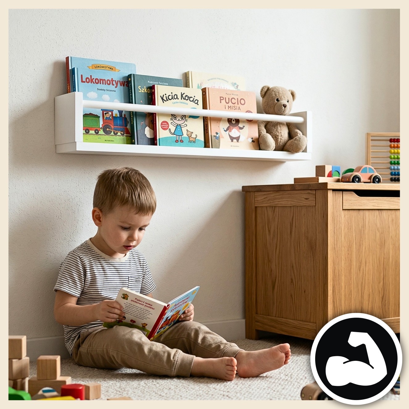 ✒️ Świetnie sprawdza się także w pokoju dziecięcym, gdzie pomaga utrzymać porządek i ogranicza zrzucanie książek podczas zabawy.