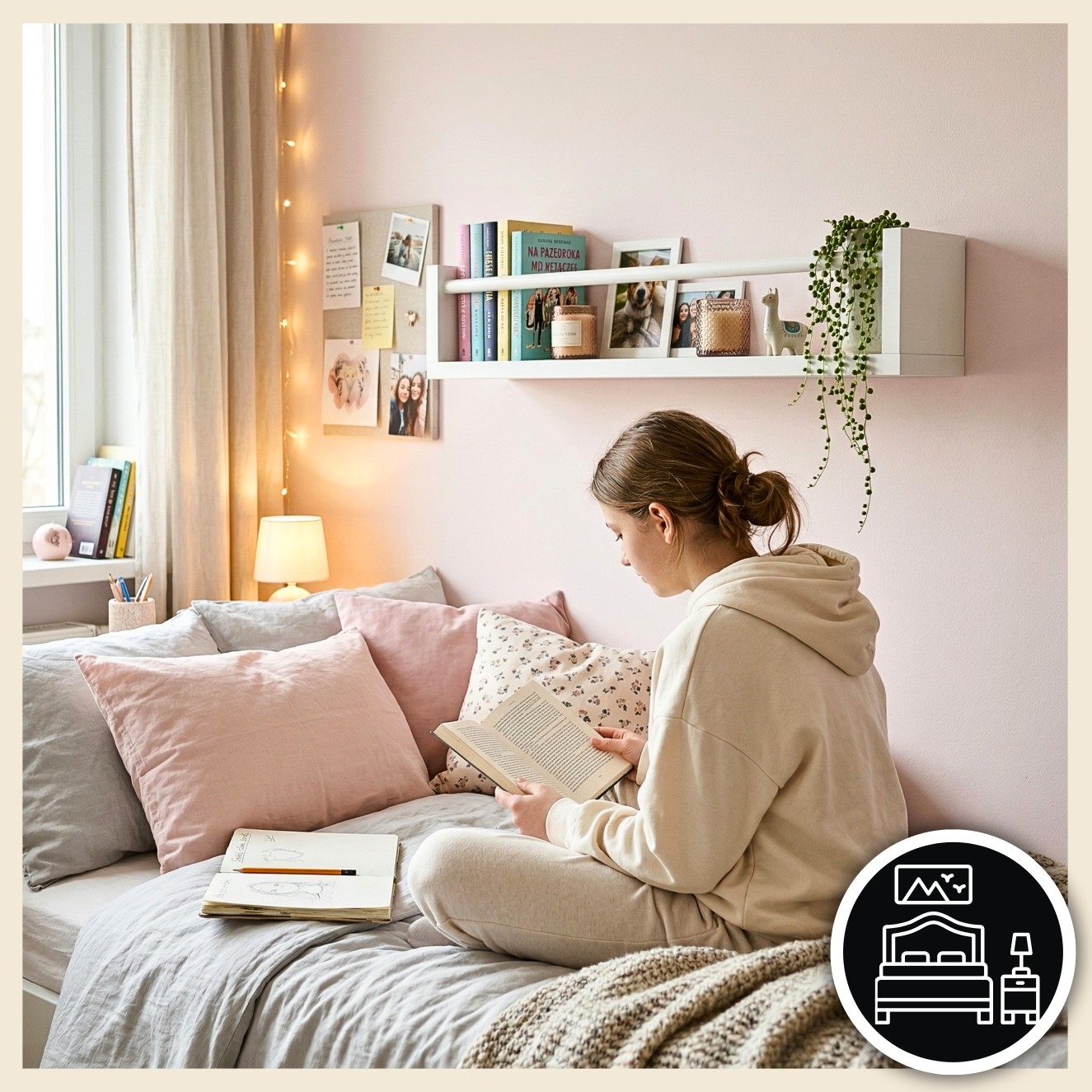 ☑️ Dzięki uniwersalnemu designowi i kompaktowym rozmiarom możesz z łatwością stworzyć kącik czytelniczy nad łóżkiem, przy biurku lub na pustej ścianie.