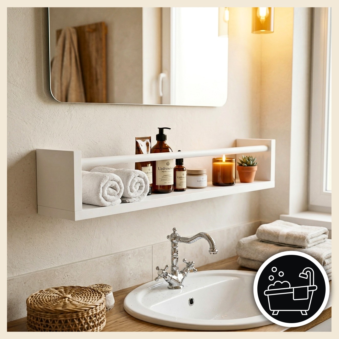 ✂️ Montaż półki jest intuicyjny i prosty, dzięki czemu z instalacją poradzą sobie także osoby bez dużego doświadczenia.