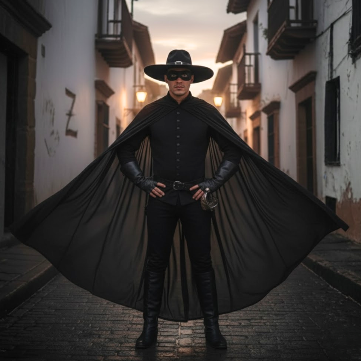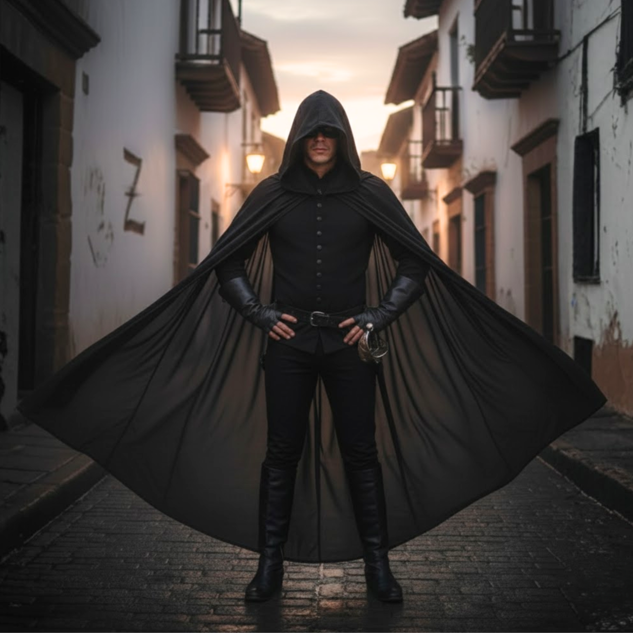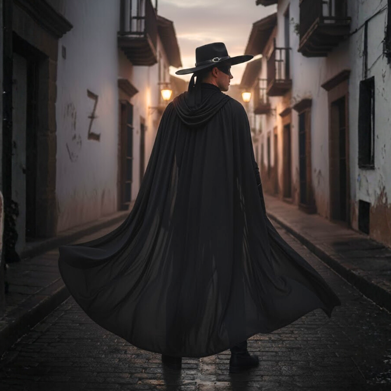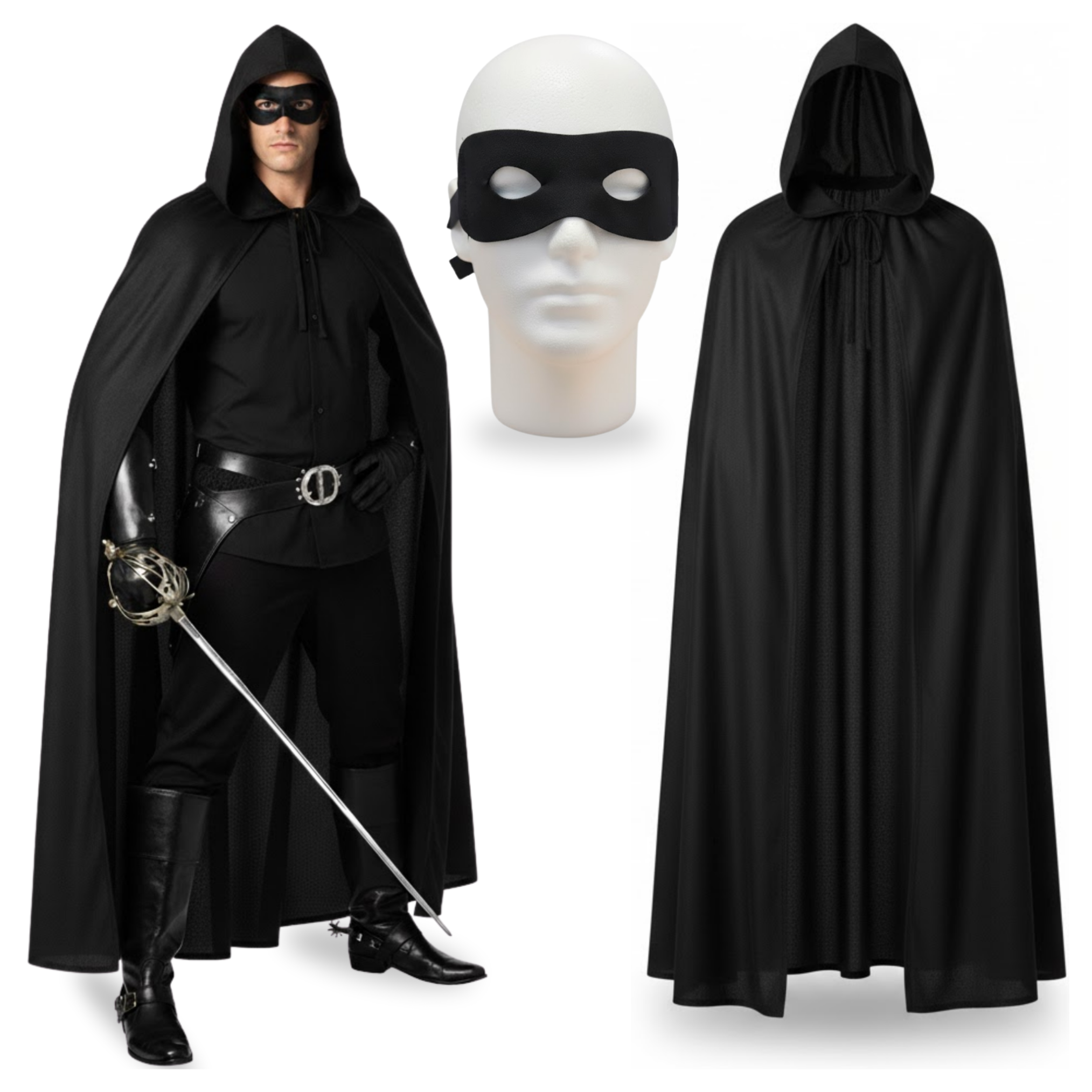 Zestaw Zorro to świetne rozwiązanie dla osób szukających szybkiego i stylowego przebrania. Minimalistyczna forma zachowuje rozpoznawalność postaci, a jednocześnie pozwala na własne dodatki – jak miecz czy pas – dla urozmaicenia stylizacji.