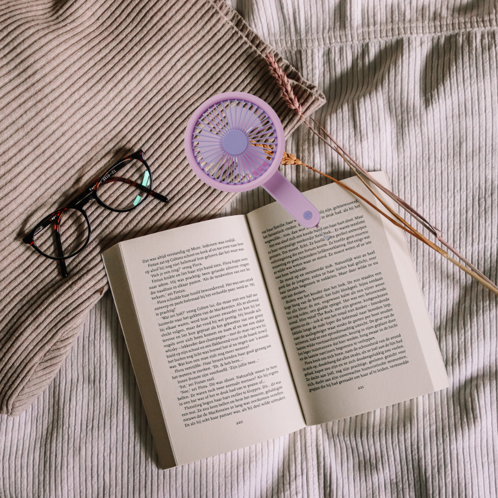 ⭐️Nasz różowo-fioletowy, przenośny wiatraczek to idealne rozwiązanie!