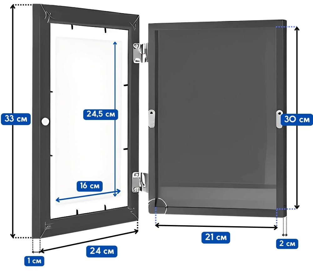 ✔️ Otwierany front – szybka i wygodna wymiana rysunków bez zdejmowania ramki.