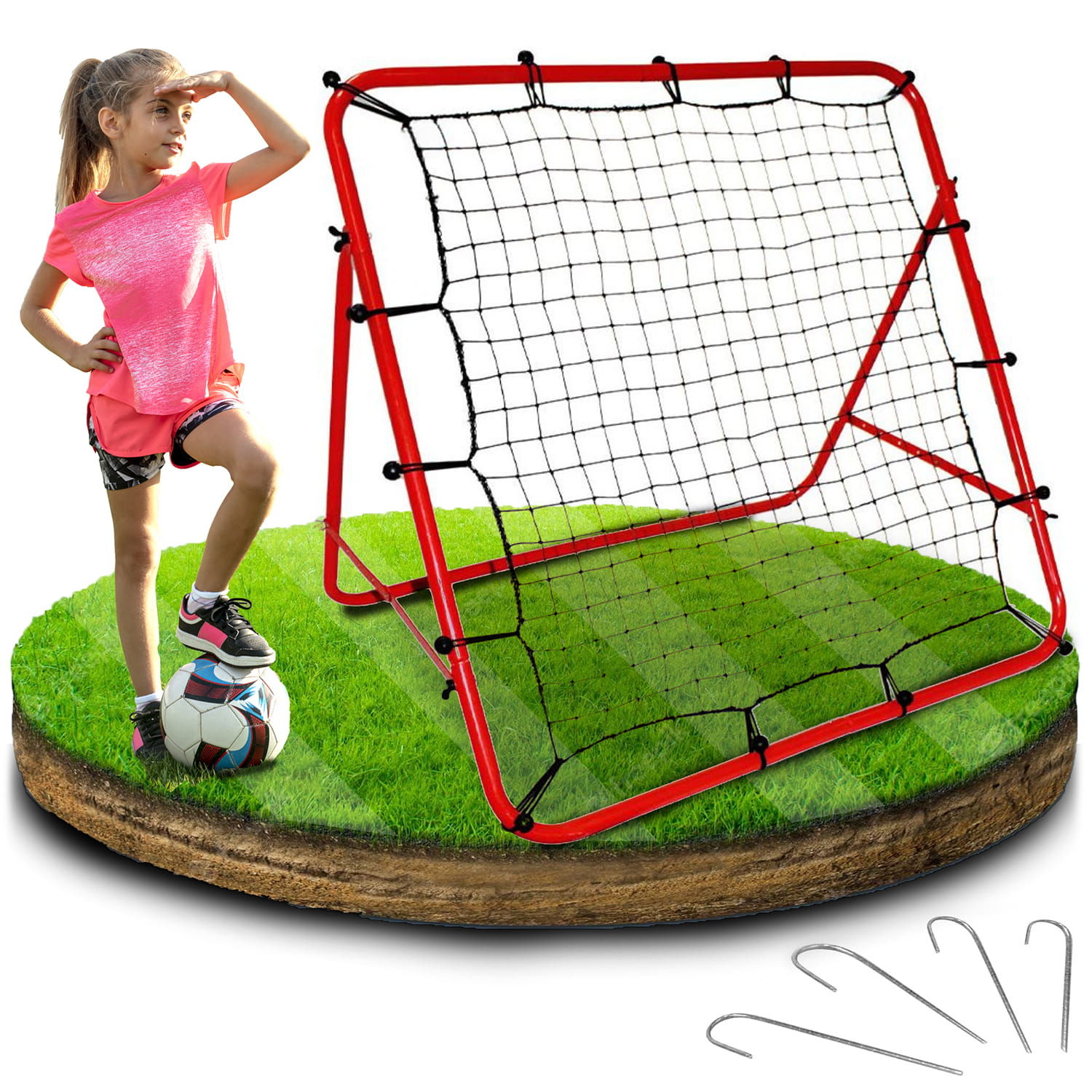 ✅ Szpilki mocujące dołączone do zestawu pozwalają na przytwierdzenie reboundera do podłoża, co zwiększy jego stabilność.