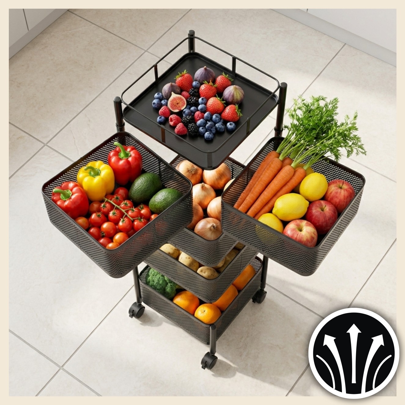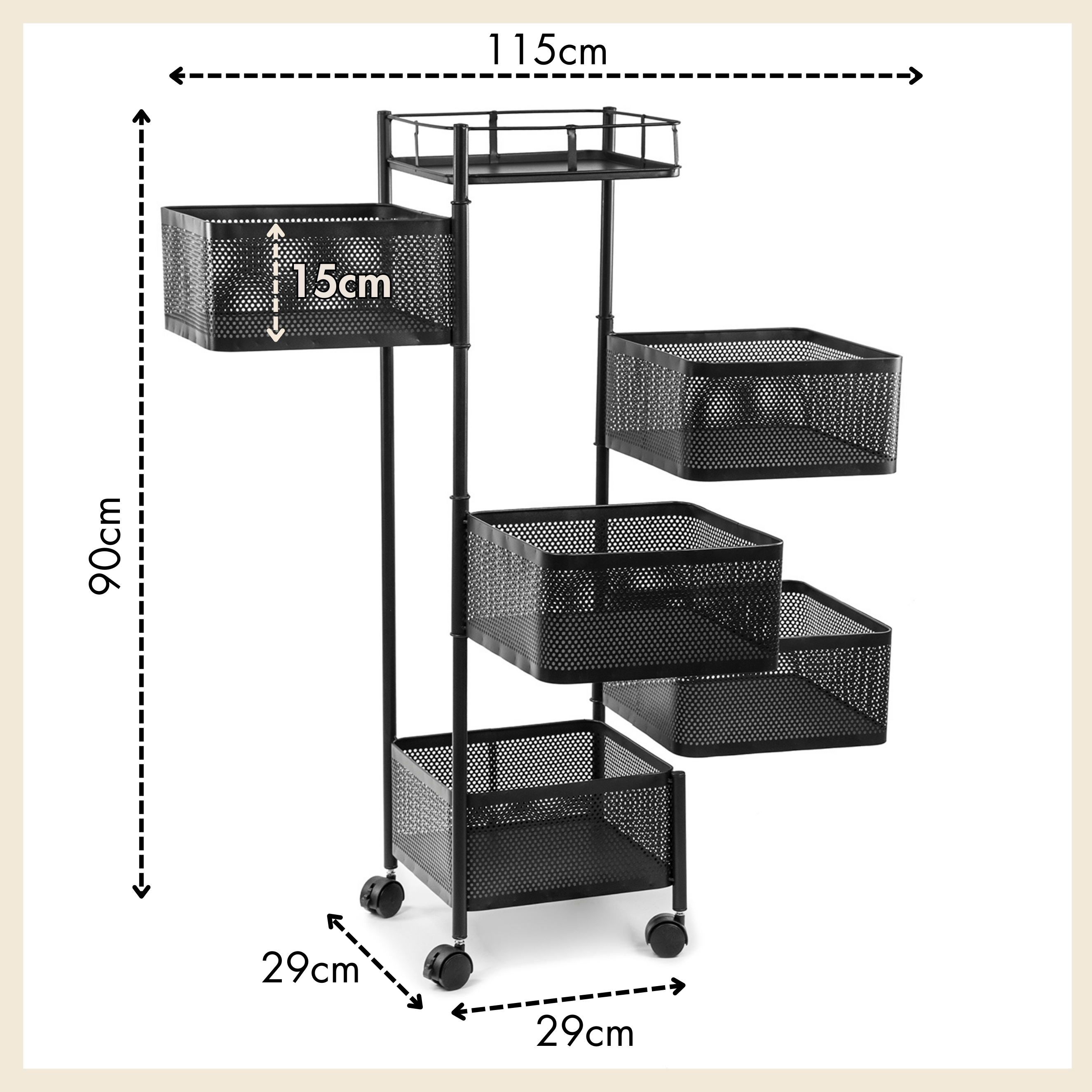REGAŁ KUCHENNY QUADRATO NA KÓŁKACH METALOWY 5 KOSZY
