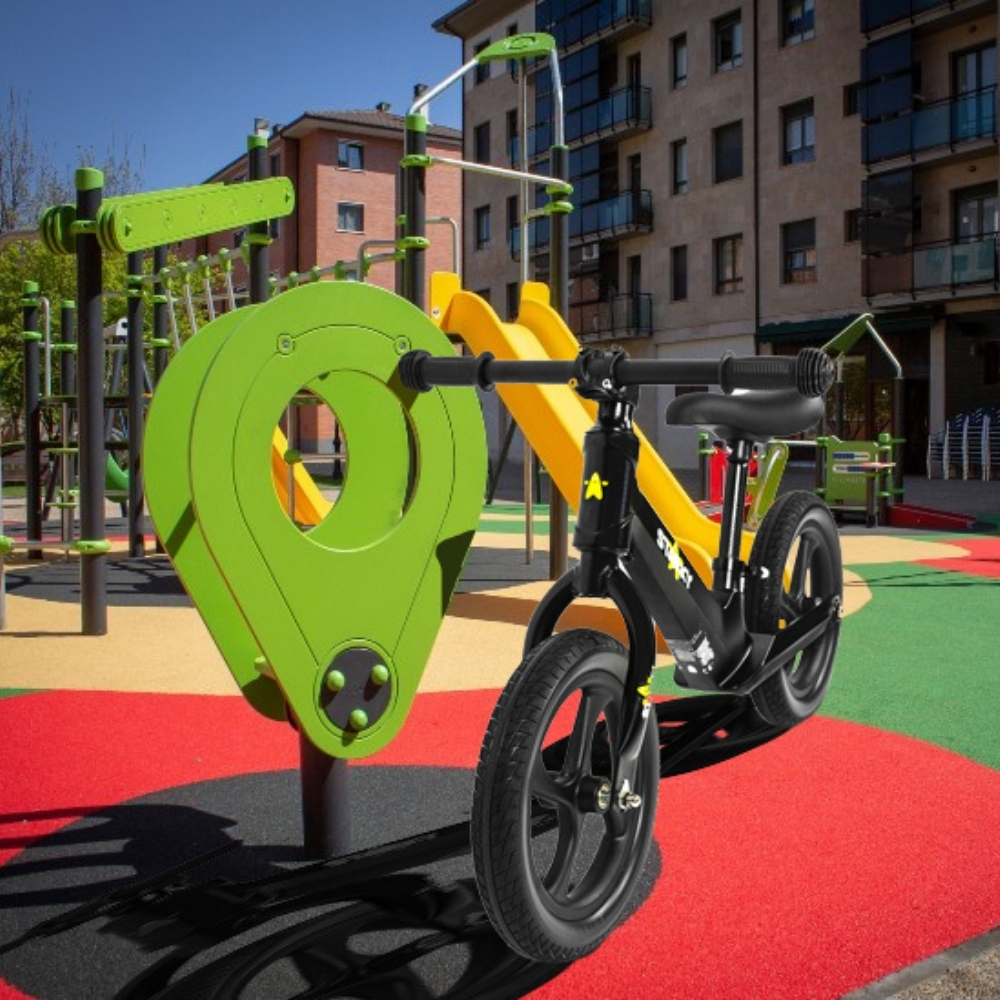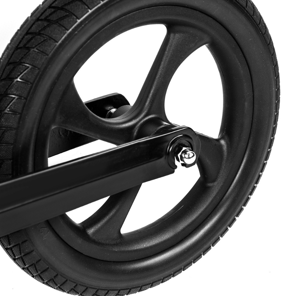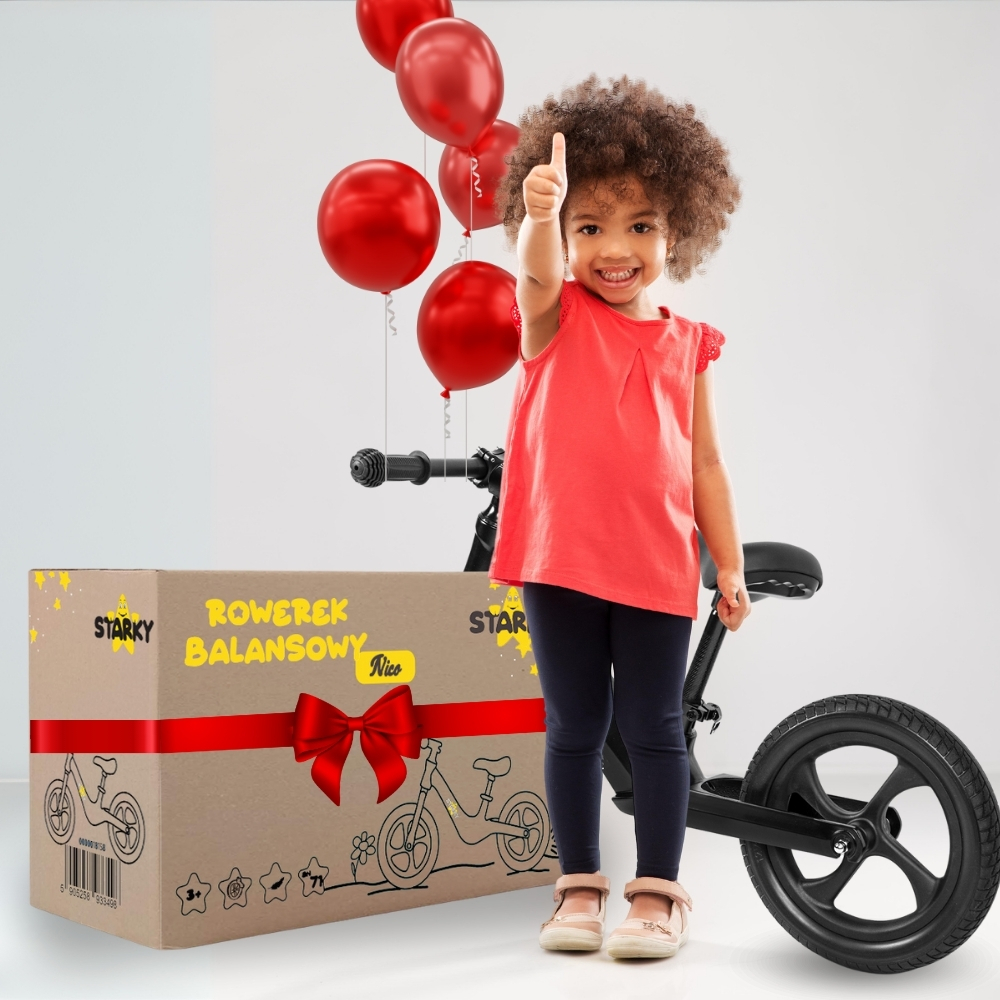 - lekkość i stabilność – dzięki solidnej konstrukcji i niskiej wadze, rowerek jest łatwy do przenoszenia, a szerokie bezdętkowe opony zapewniają bezpieczną jazdę w każdych warunkach bez obaw o przebicie koła.