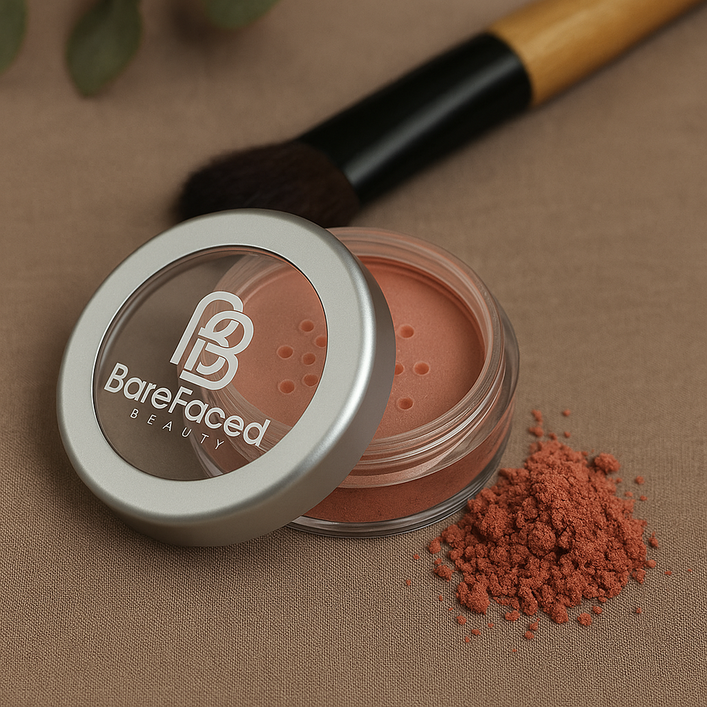 Nadaj skórze świeży, zdrowy wygląd z różem BareFaced Beauty Ishtar – mineralnym kosmetykiem w średnim, różowo-brzoskwiniowym odcieniu.