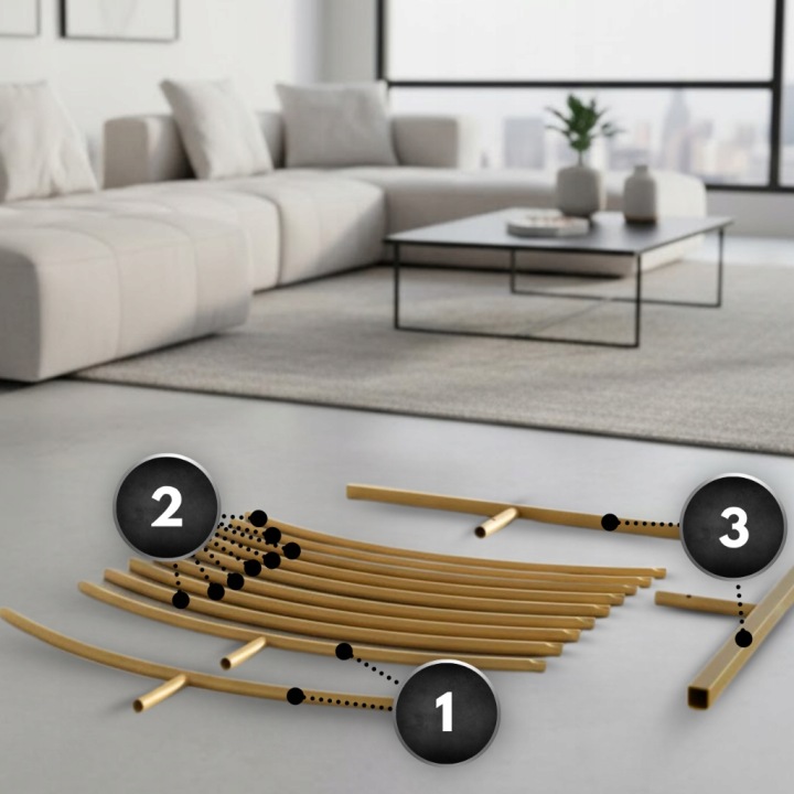 - Po złożeniu pełnego koła wsuwaj metalowe nogi [3] w dolne końce rurek z wypustkami [1].