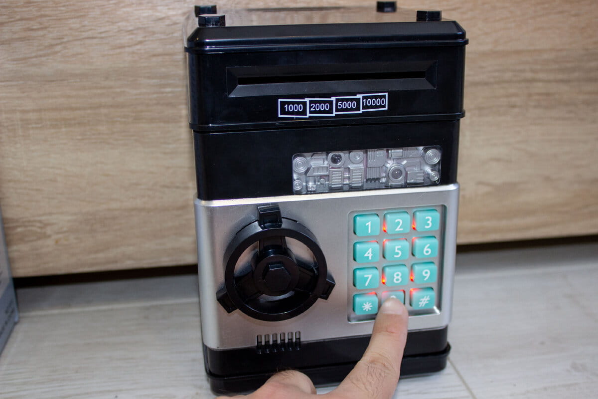 ❗️Możliwość zmiany kodu po otworzeniu skarbonki uniwersalnym kodem tj. 0000.