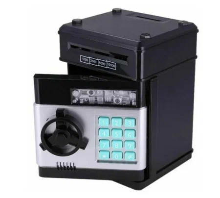 ☘️SEJF DLA DZIECI NA PIN SKARBONKA DUŻA ELEKTRONICZNA BANKOMAT CZARNY MONETY☘️