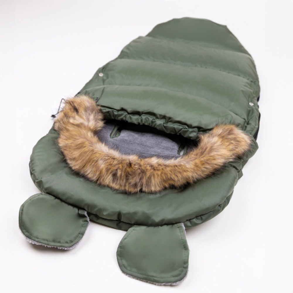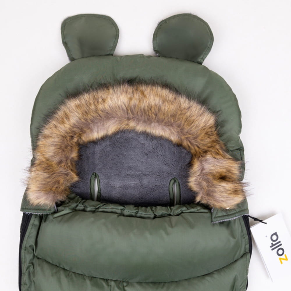 ⚡ Urocze futerko oraz uszy na kapturze nadają śpiworkowi elegancki wygląd, co sprawia, że jest nie tylko praktyczny, ale też stylowy!