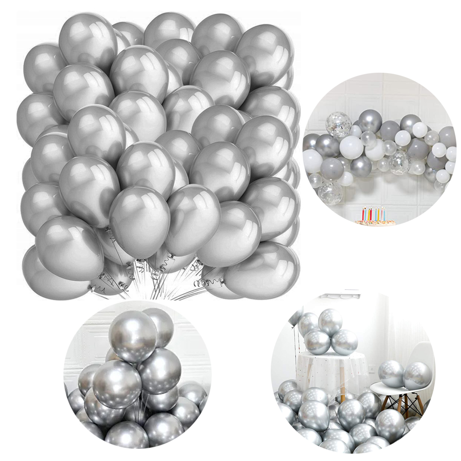⭐️SREBRNE BALONY METALICZNE CHROMOWANE ŚLUB IMPREZA URODZINY ROCZNICA 100 SZT⭐️