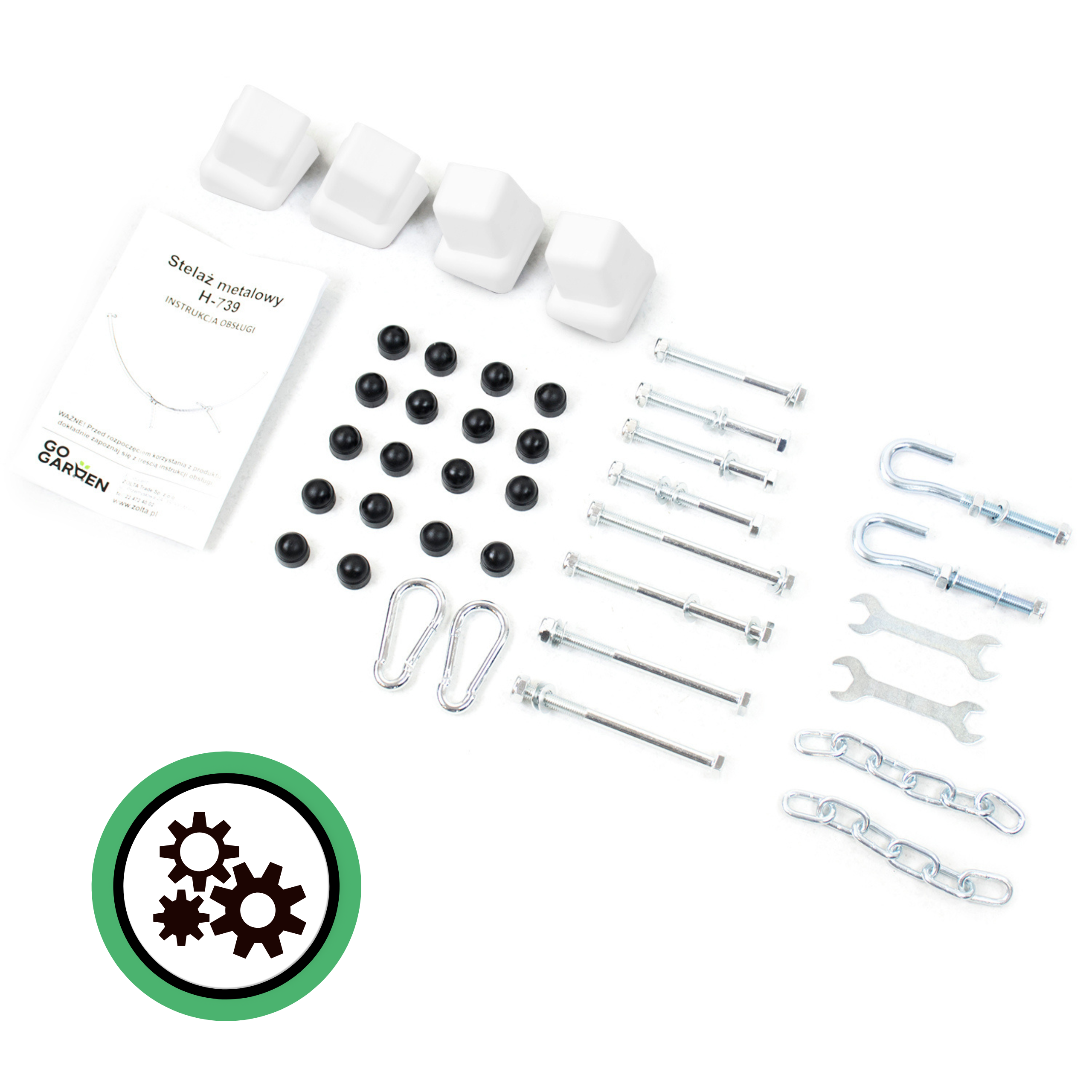 - plastikowe nakładki na śruby w kolorze stelaża