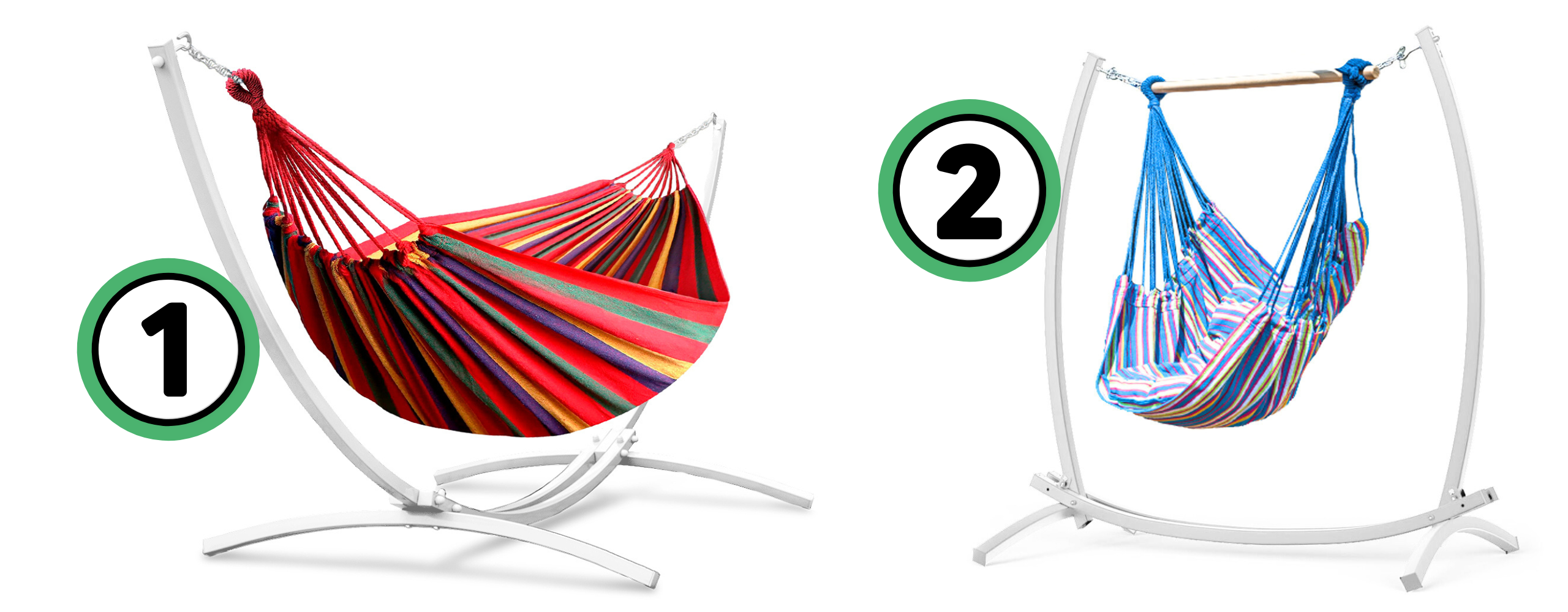 Jeden stelaż, dwa sposoby relaksu – dzięki przemyślanej konstrukcji możesz z łatwością zawiesić zarówno klasyczny hamak, jak i wygodne krzesło brazylijskie. To wszechstronne rozwiązanie, które dopasuje się do Twoich potrzeb.