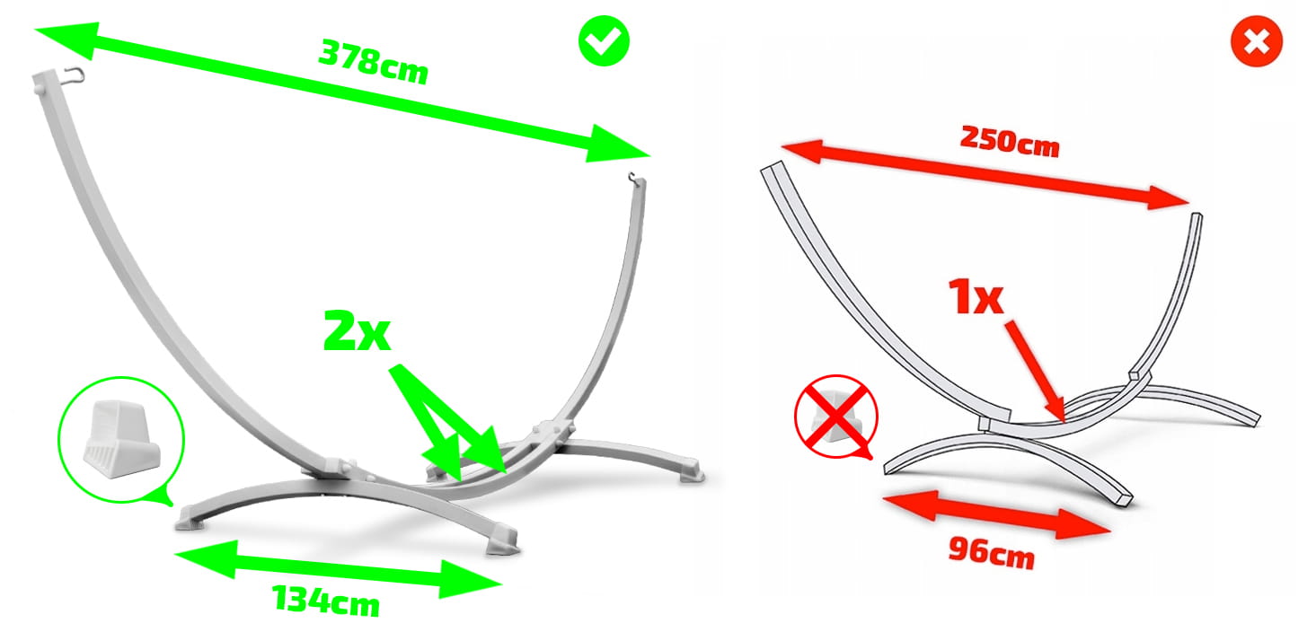 Stelaż zaprojektowano tak, aby był kompatybilny z różnymi modelami hamaków. Dodatkowo jego konstrukcja zapobiega dotykaniu plecami belki poprzecznej podczas wypoczynku – to wygoda bez kompromisów.