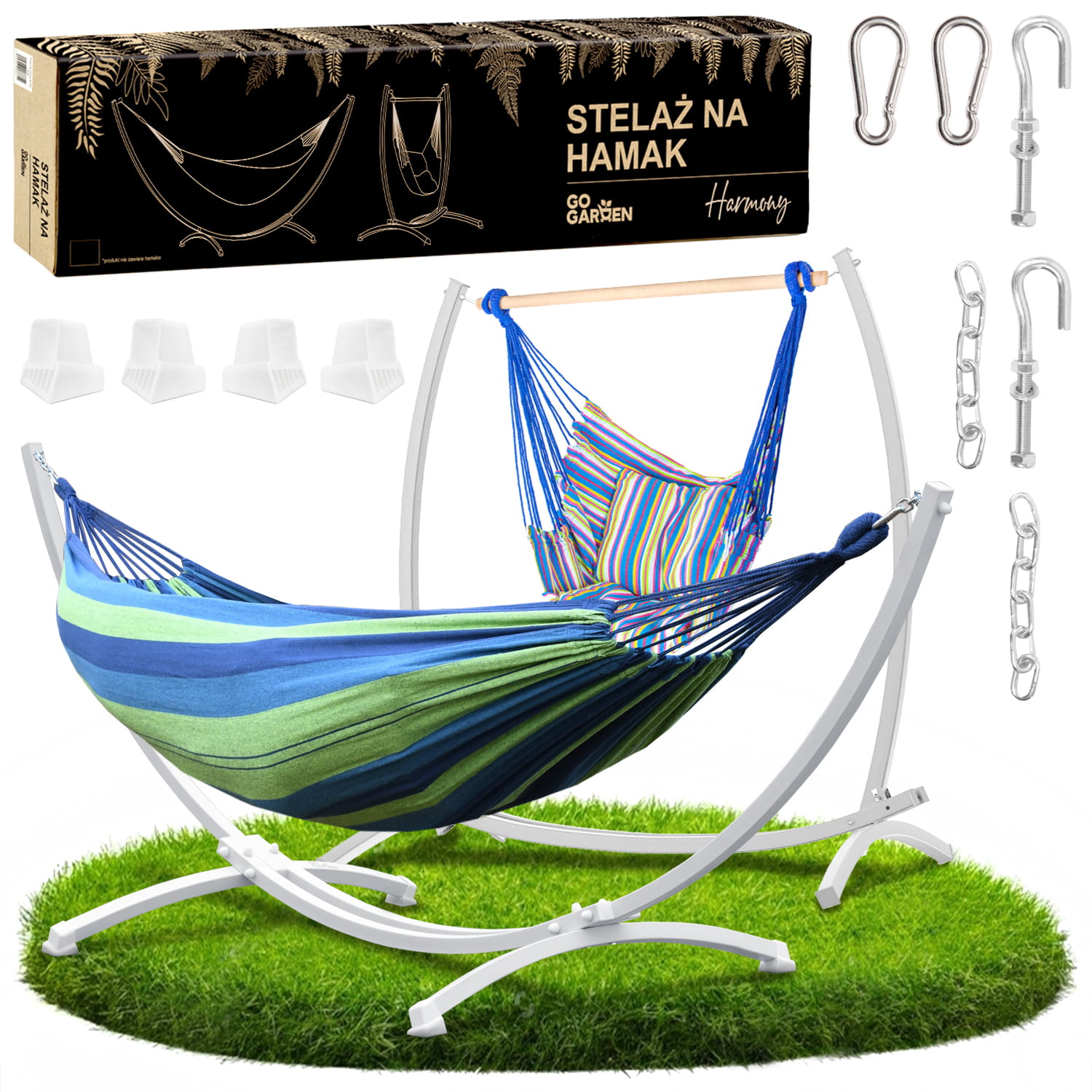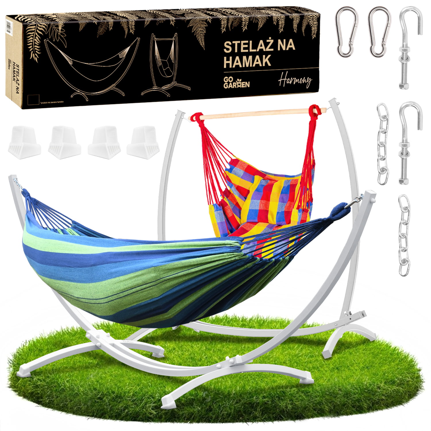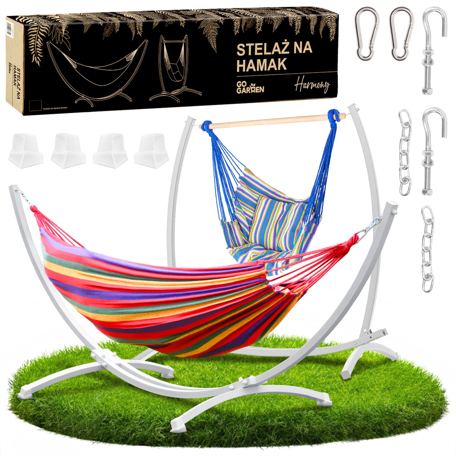 ☘️ METALOWY SOLIDNY STELAŻ 2w1 NA HAMAK HUŚTAWKĘ DWUOOSOBOWY DO 2️⃣5️⃣0️⃣ KG KOLOR BIAŁY GOGARDEN