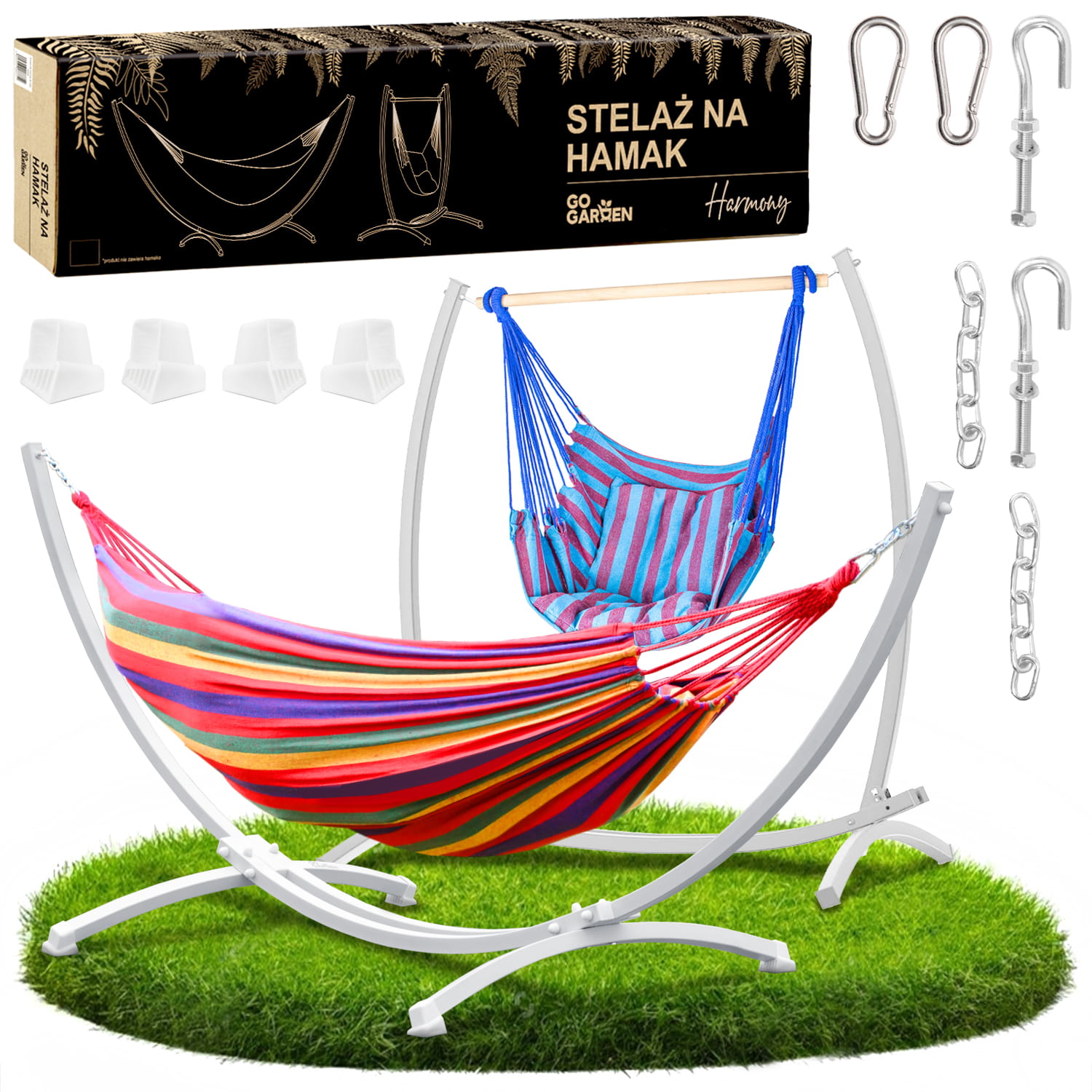 Stelaż na hamak biały 2w1 + hamak + krzesło brazylijskie