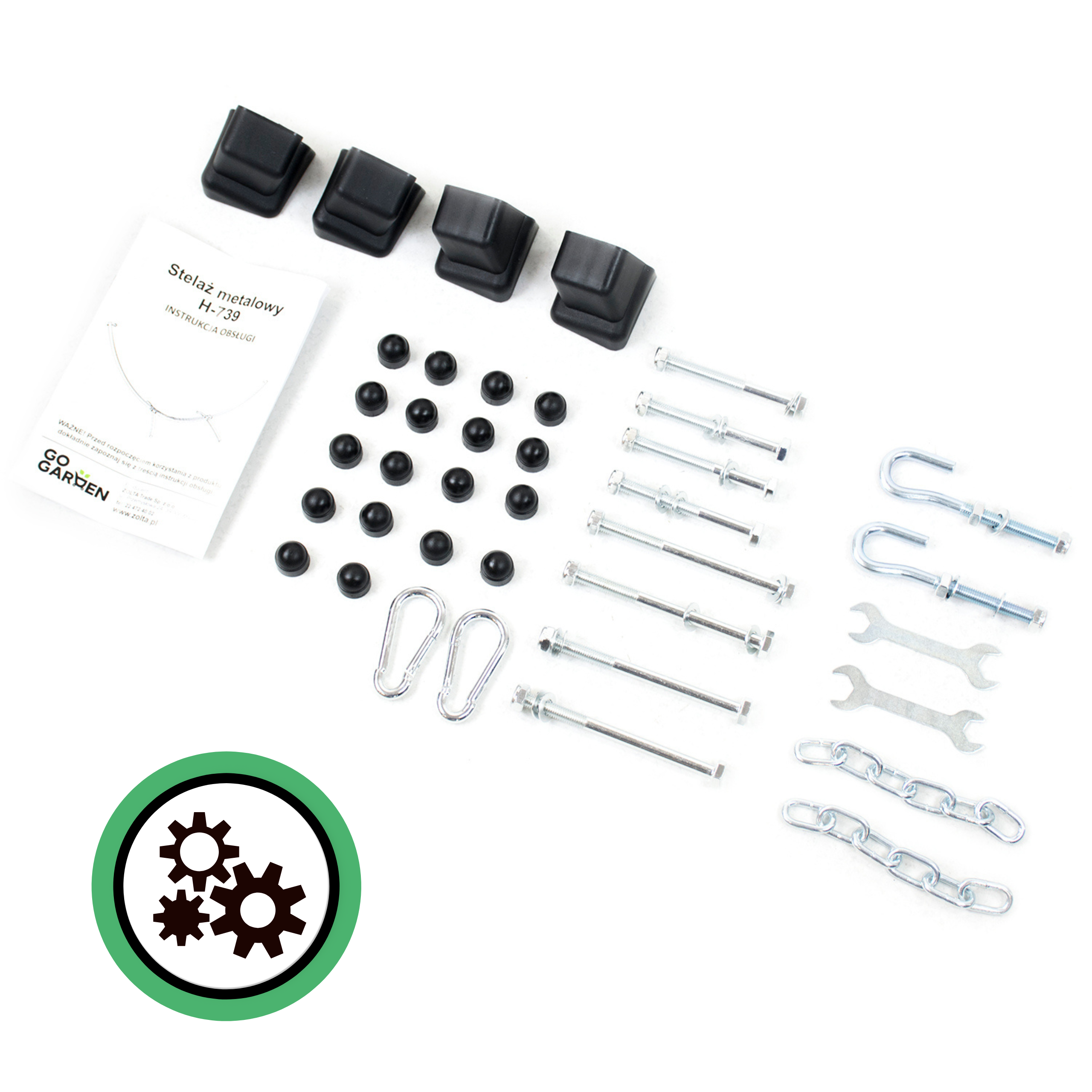 - plastikowe nakładki na śruby w kolorze stelaża
