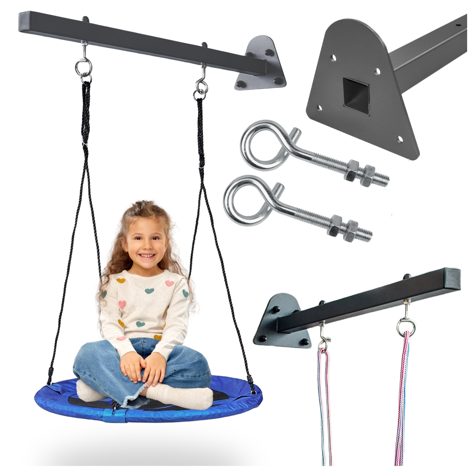 Drążek stanowi dodatek do stelaża na huśtawkę. Dzięki niemu możesz rozszerzyć stelaż o dodatkowe miejsce do huśtania!