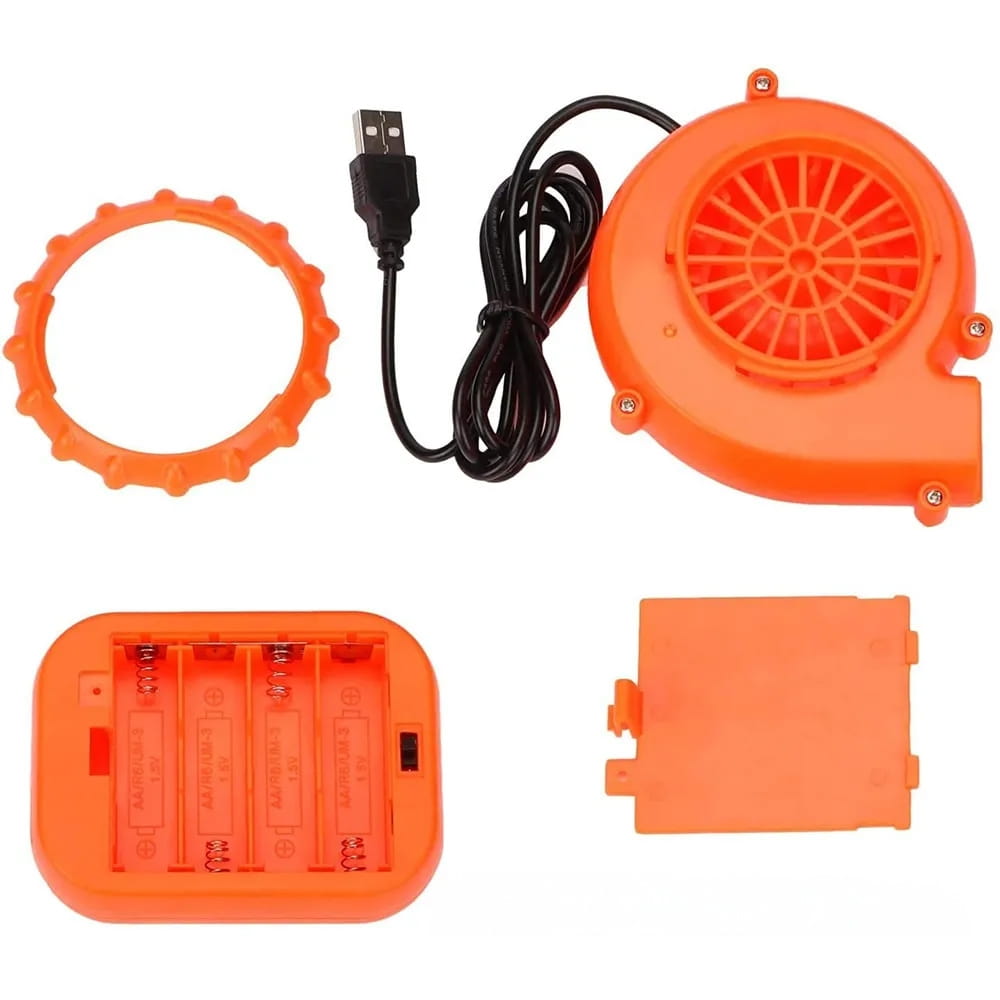 Nie musisz męczyć się z nadmuchiwaniem – dołączony wentylator robi to za Ciebie! Wystarczy podłączyć go do 4 baterii AA lub powerbanku z USB i już po kilkudziesięciu sekundach kostium jest gotowy do akcji.