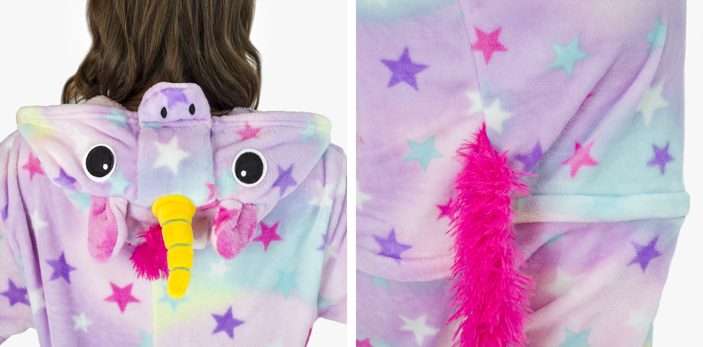 Wejdź w świat zabawy i wygody dzięki uroczemu kombinezonowi Jednorożec Gwiazdki! Uszyty z miękkiego, przyjemnego w dotyku materiału zapewni Ci ciepło i komfort zarówno podczas odpoczynku w domu, jak i na przebieranych imprezach czy spotkaniach ze znajomymi. Kombinezon wyróżnia się kapturem z rogiem, uszkami i sympatycznym pyszczkiem, a jego materiał ozdobiony jest gwiazdkowym wzorem, który nadaje mu magicznego charakteru. Jednorożec, symbol fantazji i marzeń, w tej wersji dodatkowo rozświetla każdą chwilę bajkowym urokiem. To także doskonały pomysł na prezent, który ucieszy miłośników oryginalnych i niezwykłych gadżetów. Dzięki starannemu wykończeniu i wysokiej jakości materiałowi kombinezon posłuży Ci przez długi czas. To połączenie zabawy, wygody i oryginalnego stylu!