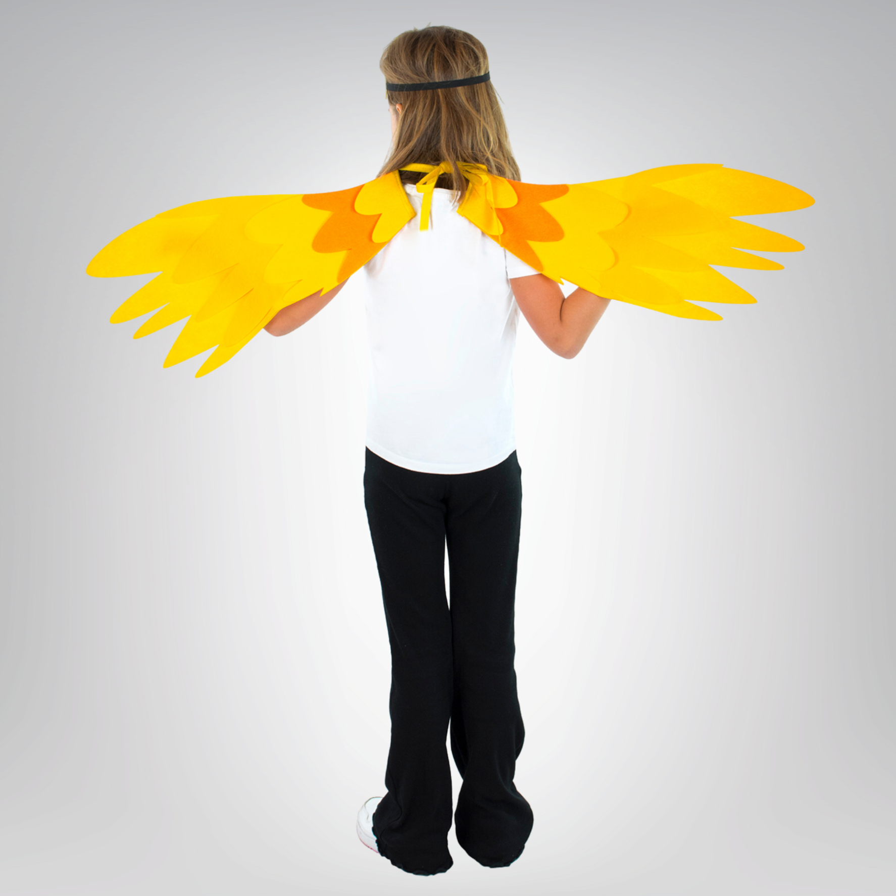 Filcowe skrzydła, które dziecko łatwo założy dzięki elastycznym gumkom na ręce. Z tyłu można je związać, co zapewnia wygodę noszenia i swobodę ruchów – idealne do latania i skrzydlatych przygód!